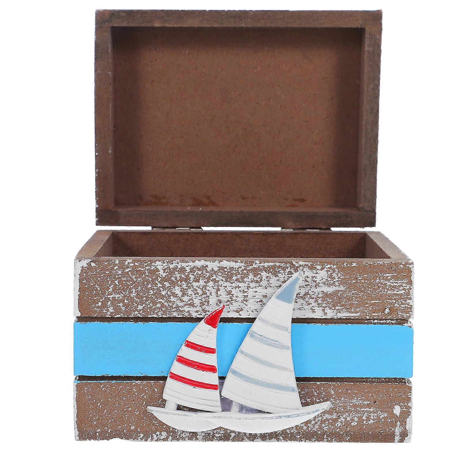 Ocean Themed Wooden Treasure Chest Small Storage Box for Jewelry 4Pcs