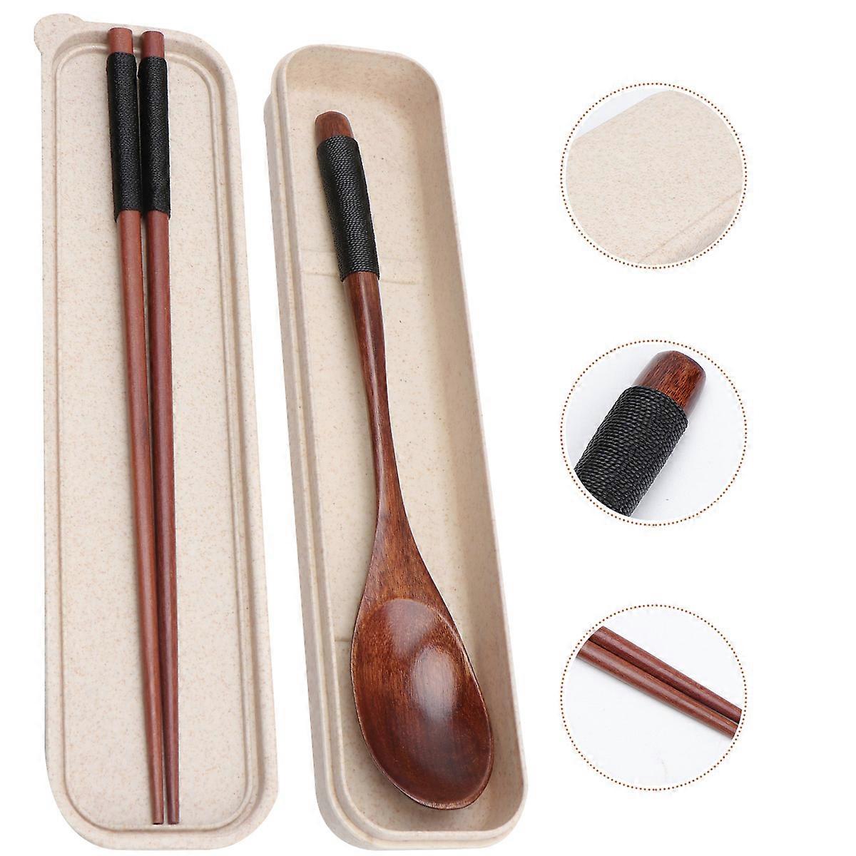 Portable Cutlery Set with Box for Eating Featuring Coffee Synthetic Material Spoon Chopsticks Set 3Pcs