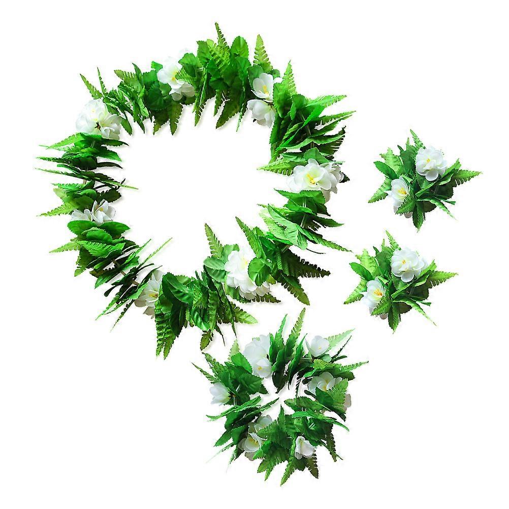 Floral Wreath Necklace Bracelet Set for Decoration 4Pcs Green Hawaiian Leis