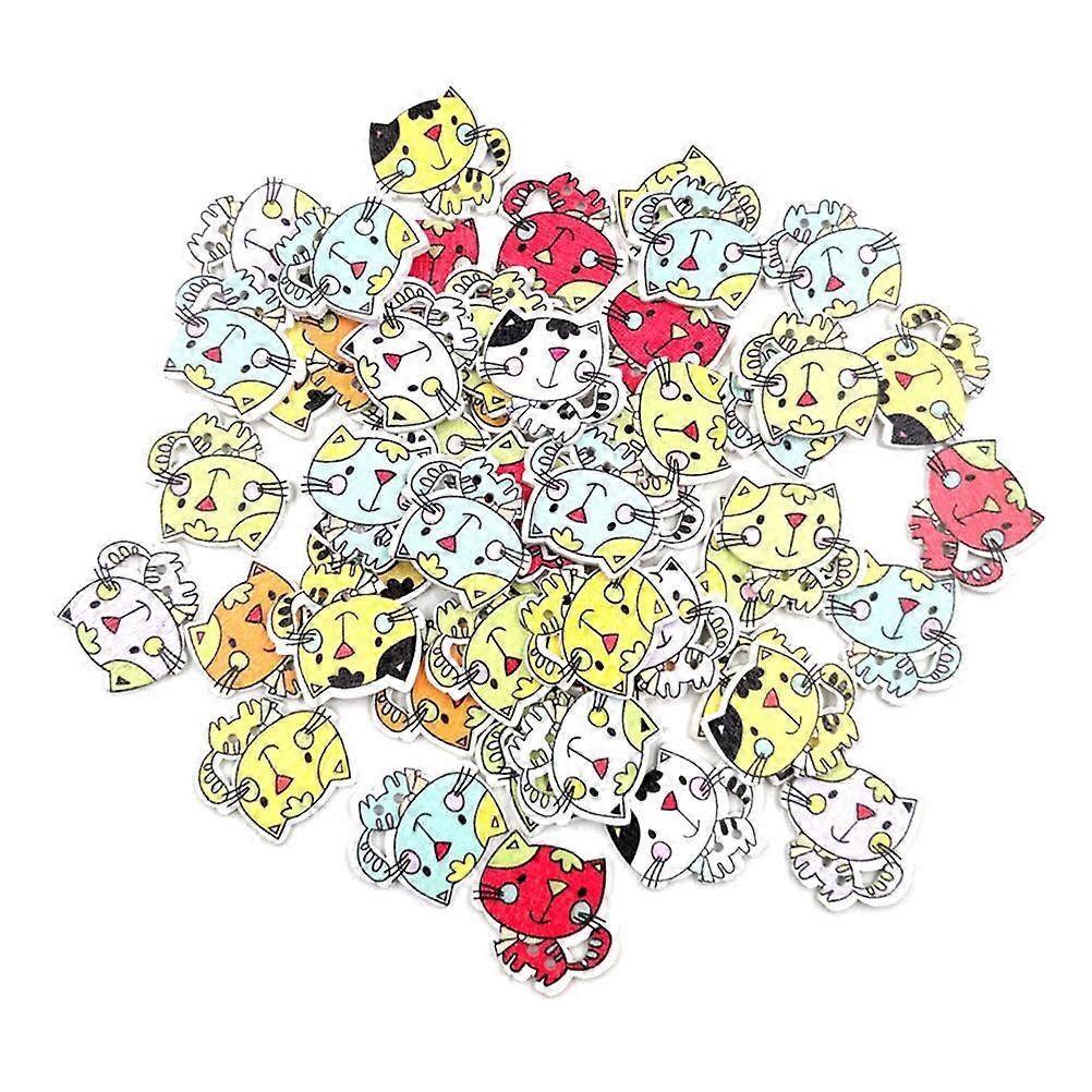 DIY Cartoon Cat Buttons Wooden 2 Holes Buttons for Crafting 50Pcs Pack