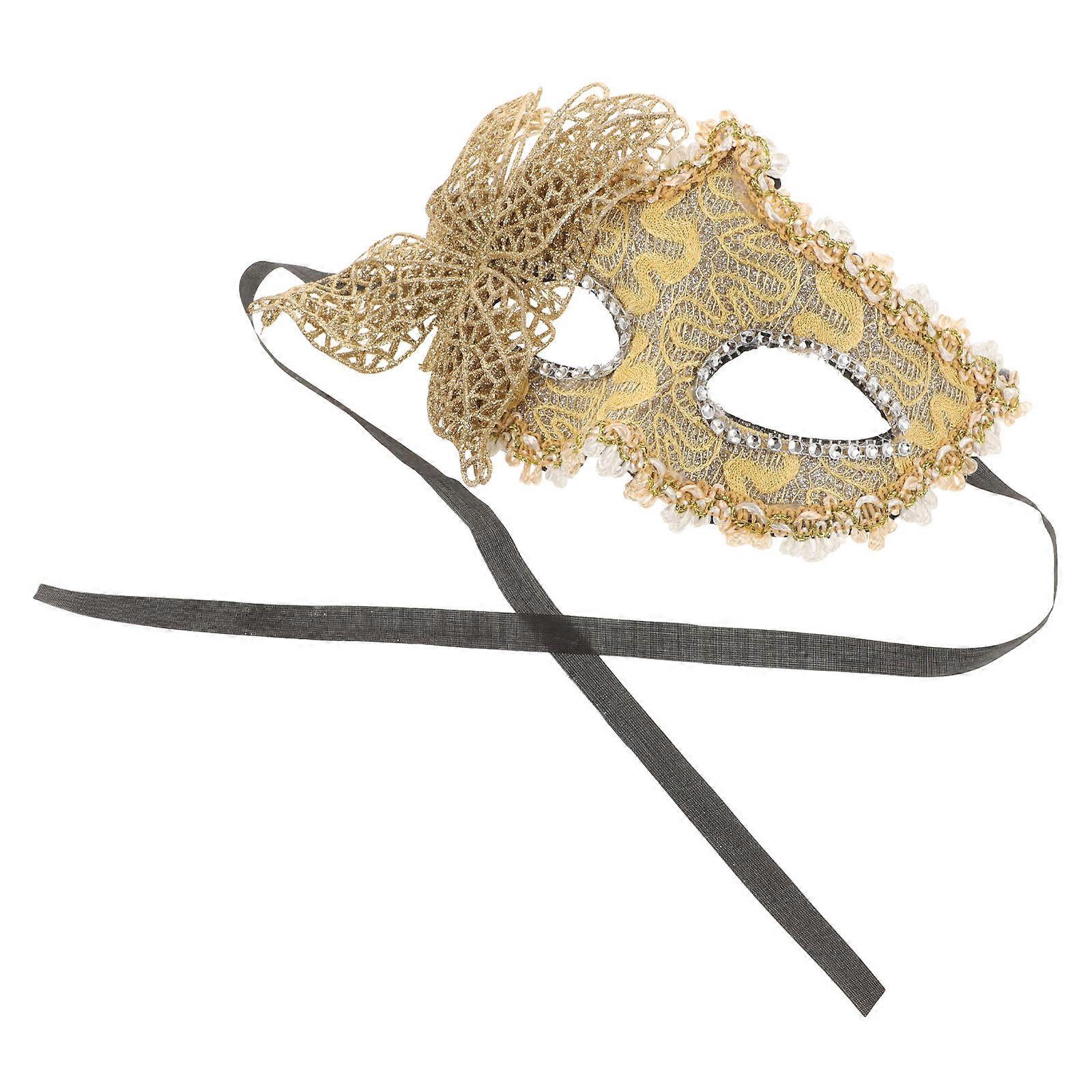 Golden Venetian Masquerade Mask Half Face for Women Party 3Pcs Set