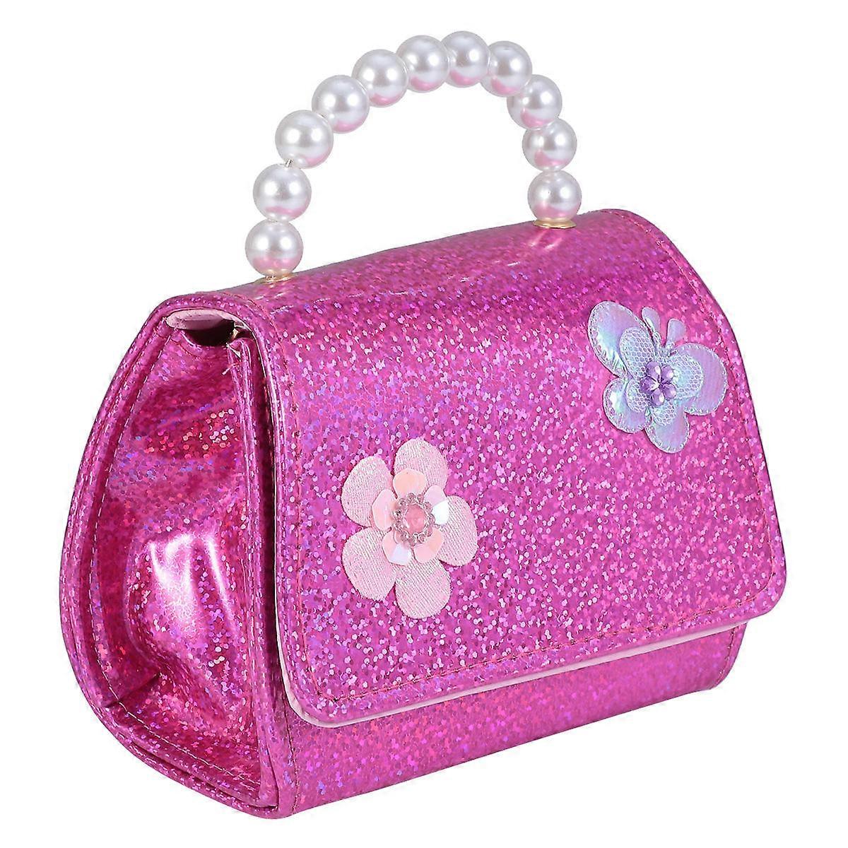 Handbag for Children 1Pcs Mini Pearl Chain Bag with Flower Pattern Red