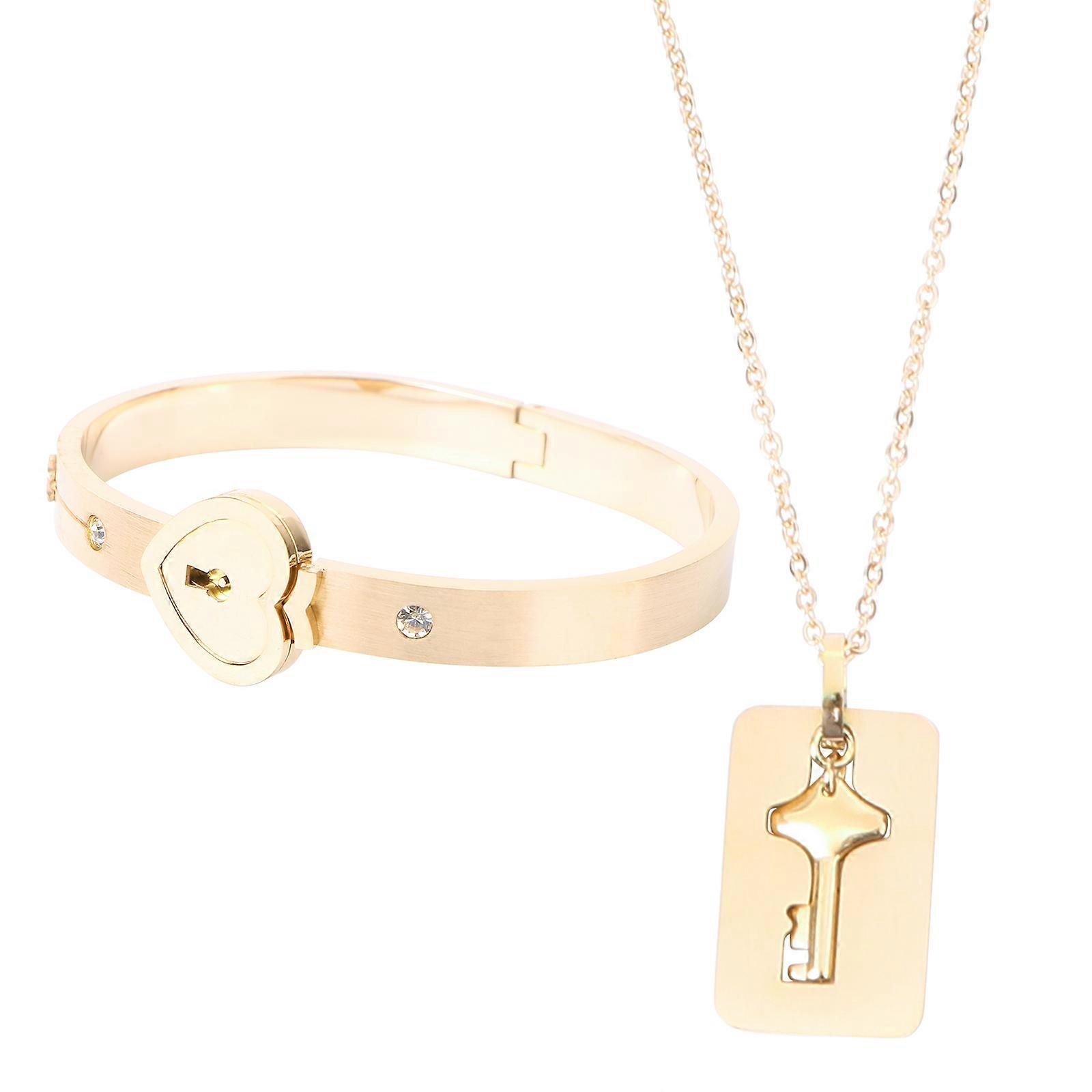 All women have their own individual stories to tell, a personal collection of special moments that makes them who they are. This heart shape bracelet with key necklace is designed for lovers, for your deeply loved one, and for your romantic girls. these memories that bring us together and make us Features -Material: Titanium steel -Size: 6.20X5.10X1.70cm/2.44X2.00X0.67in - Timeless yet fashionable, this piece of jewelry adds a touch of glamour to everyday outfits. - Makes a sentimental surprise for any awesome lady. Great gifts for Mom or Mother's Day, anniversary, birthday, or wedding celebration. - Durable titanium steel material, fine workmanship, comfortable touch. - Suitable for street photo accessories, sweater accessories, etc. - Key necklace heart shape bracelet design, wearing for showing more temperament, make your charming. Package list: 1 x bracelet 1 necklace