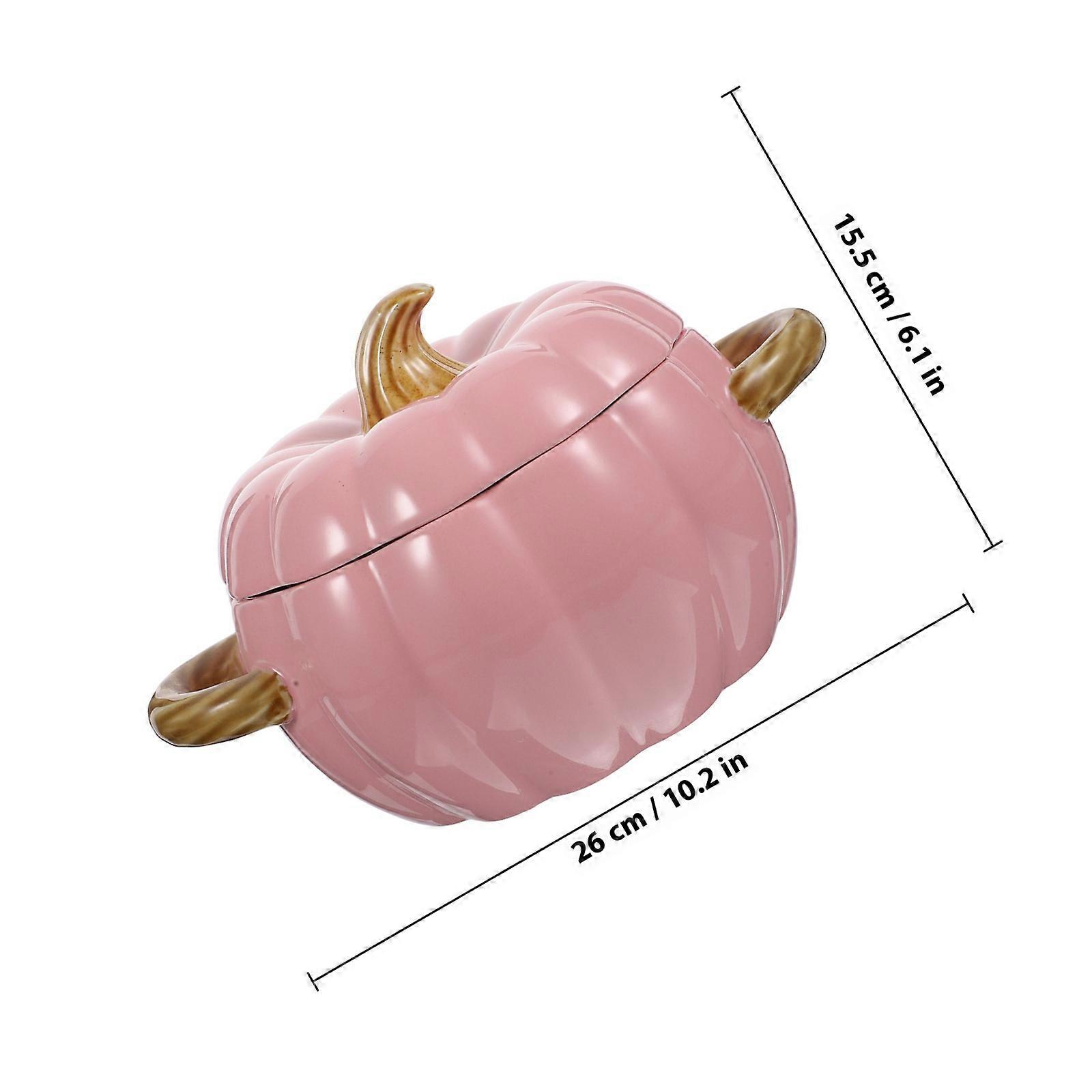 Ceramic Pumpkin Bowl for Soup and Stew with Lid Pink