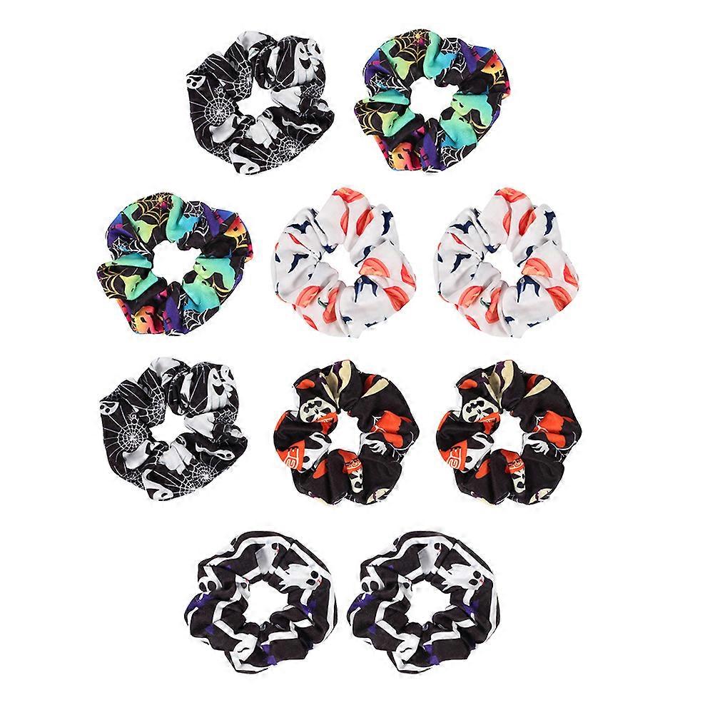 Halloween Hair Scrunchies for Decor 10Pcs Pumpkin Elastic Hairband Assorted