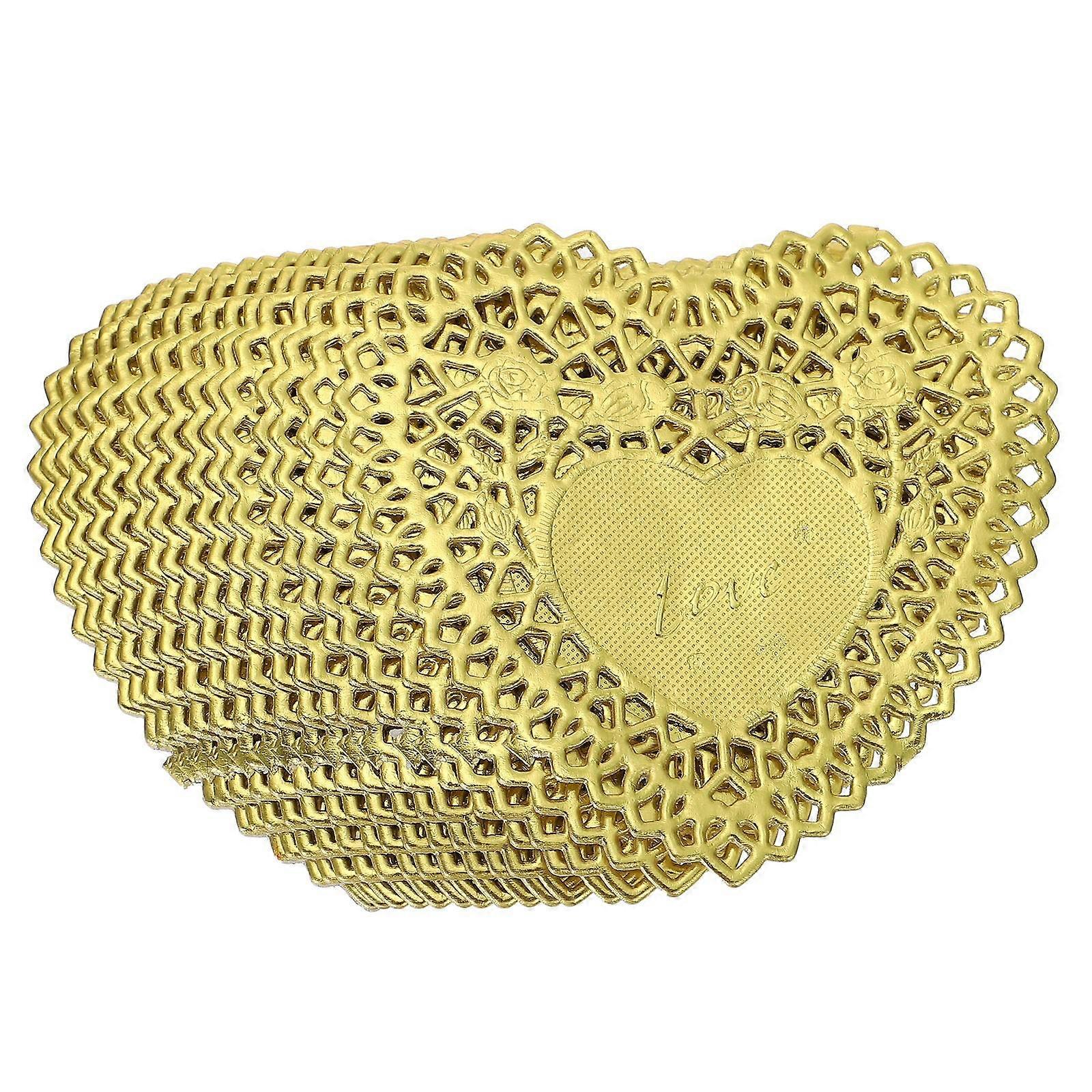 Heart Shape Paper Doilies for Decoration 100 Sheets Golden Color Wedding Party