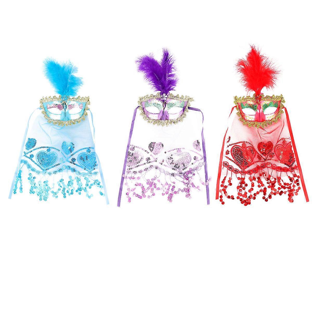 3pcs Veil Plastic Mask Halloween Cosplay Masquerade Belly Dance Masks for Lady (Blue Purple Red for Each 1pc) Package list: 3 x Veil Mask