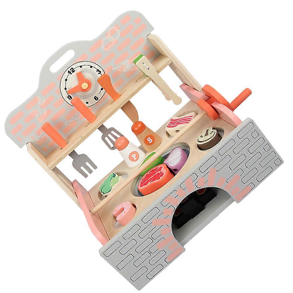 Lifelike Wooden Mini Handheld Stove Kids Kitchen Plaything Toy Set for Role-Playing