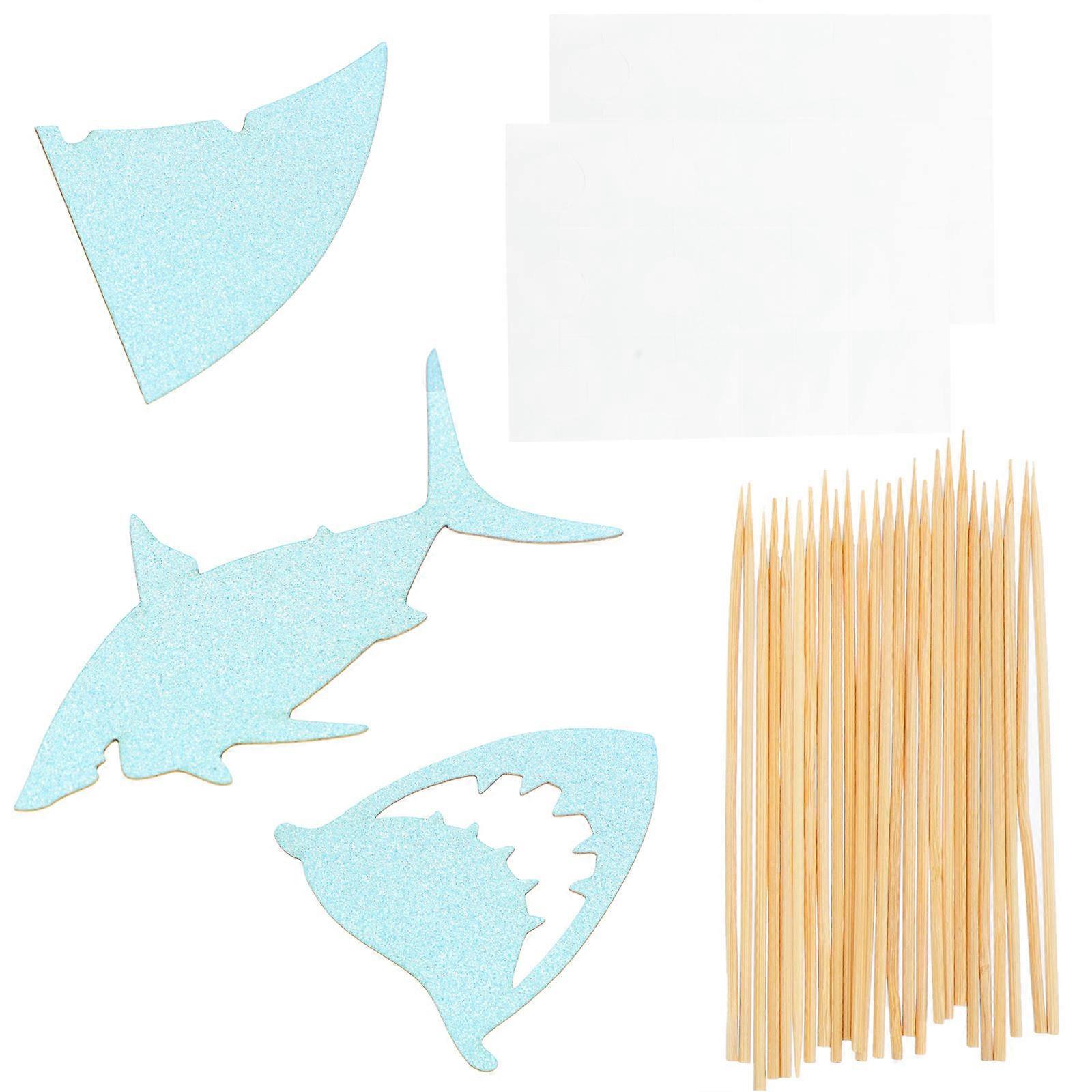 Blue Glitter Shark Cake Toppers Paper Picks for Party Decoration 24Pcs