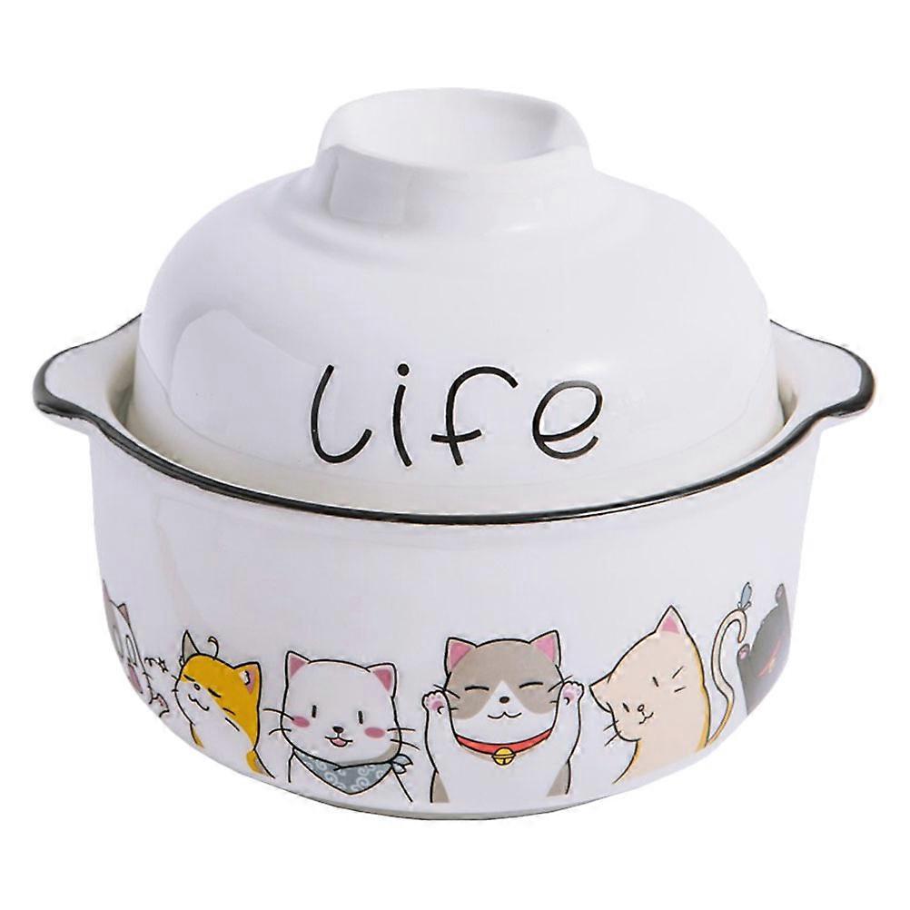 Instant Noodle Storage Bowl Ceramic for Food Serving 1Set White