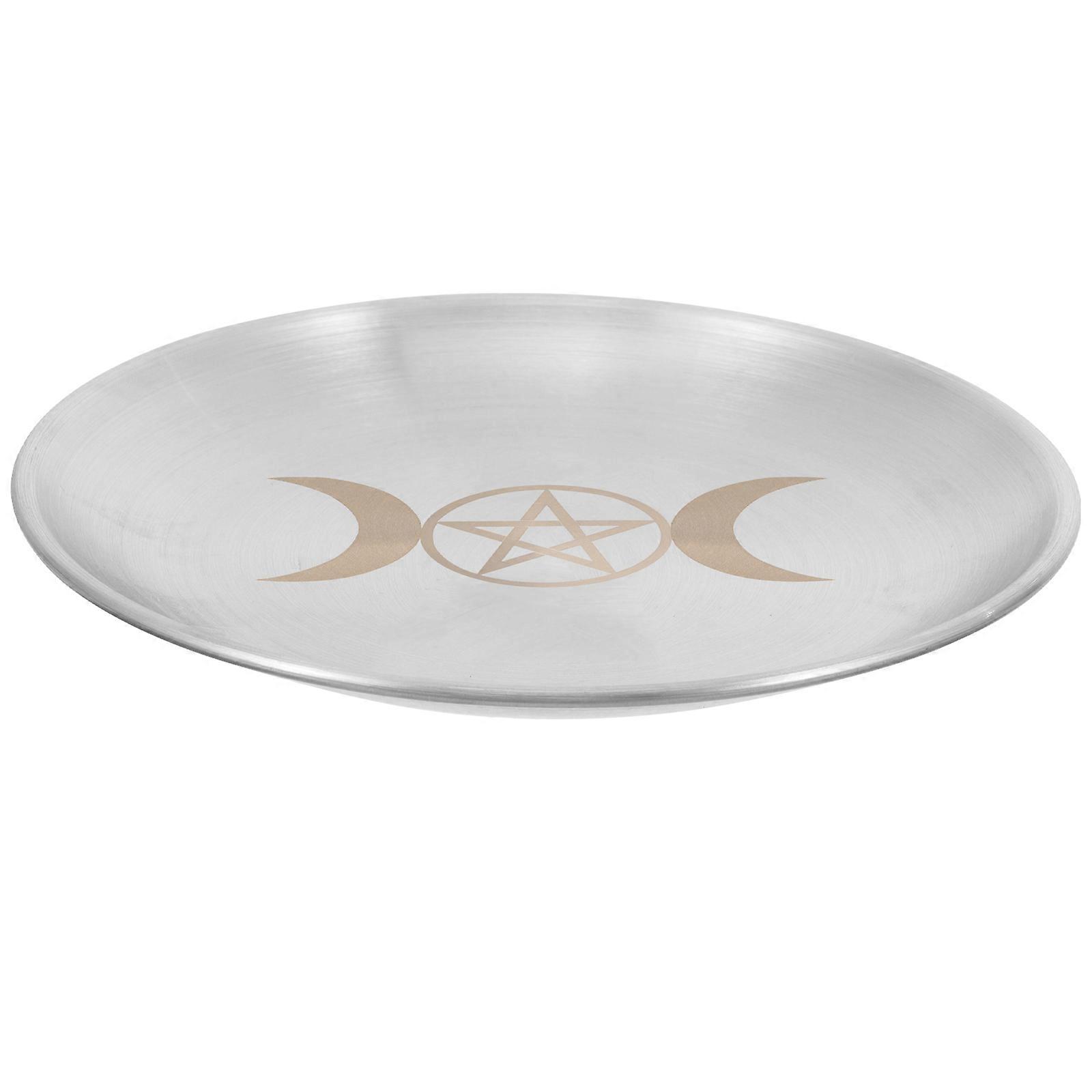 This altar tray with unique and creative pattern can give your table an mystery with aesthetic look. Compact size, and light weight, easy to take, suitable for temple, office, living room, etc. The stainless steel plate can function as a practical candle holder, a jewelry storage plate, or a tray for the altar, have good decorative effect. Features - ColorLight Grey -Material: stainless steel - Size: 14.00X14.00X1.00cm/5.50X5.50X0.39in -Featuring the pentagram pattern design, this altar plate is stylish and elegant, can bring your table a different look. -The stainless steel tray can be used as a display tray of objects used for family sacrifices or religious ceremonies. -Simple round shape and classic color makes the metal tray suitable to be used in most of the altar activities. -This altar plate decoration is made of premium and sturdy stainless steel materials, and practical to be used for long time. -Good workmanship, no acute edges or burrs, this metal display tray is safe to your hands for you to use with peace of mind. Package list: 1 x candle holder plate