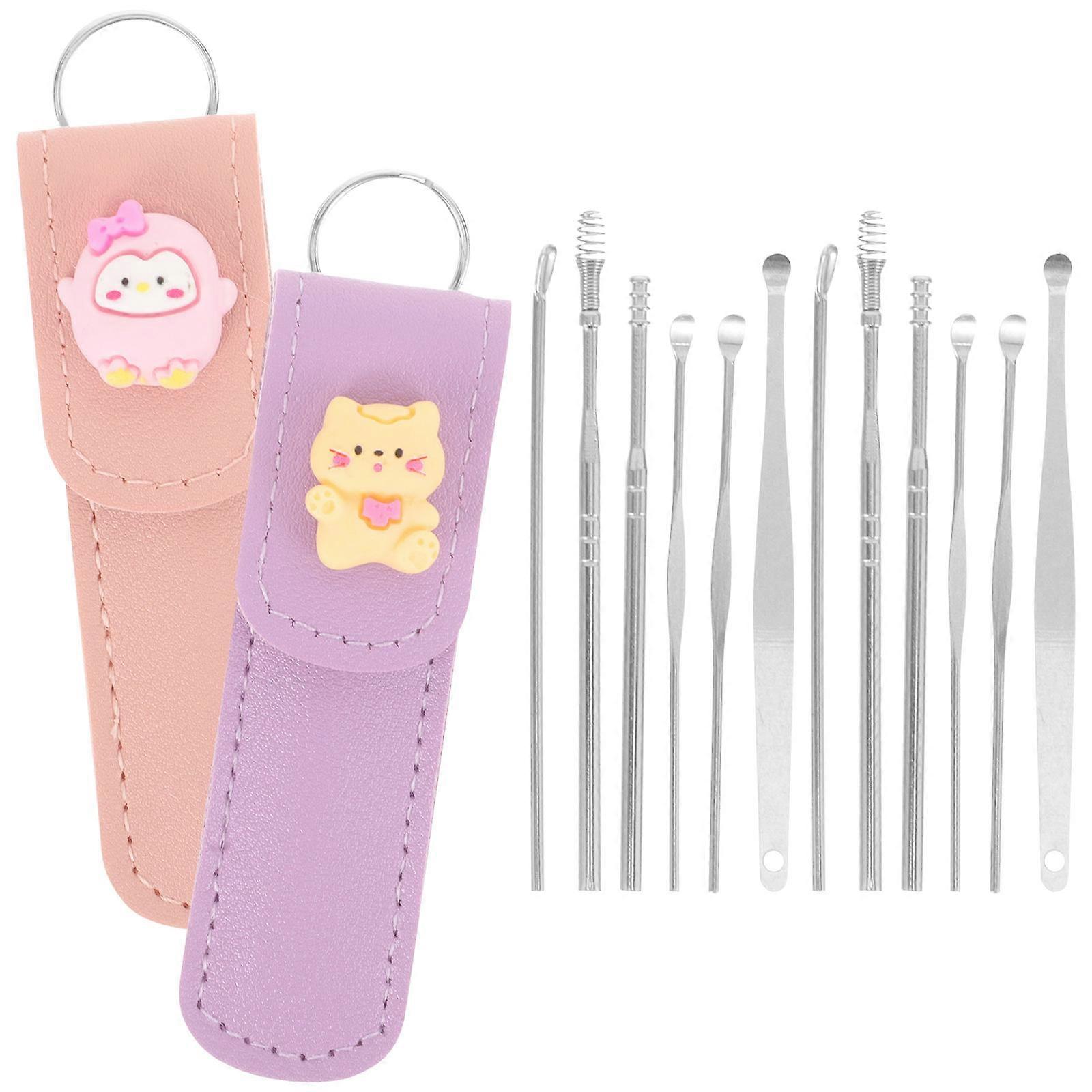 Earwax Removal Tools Kit 4 Sets Portable Stainless Steel Ear Cleaners Assorted Color For Travel And Personal Hygiene 2Pcs