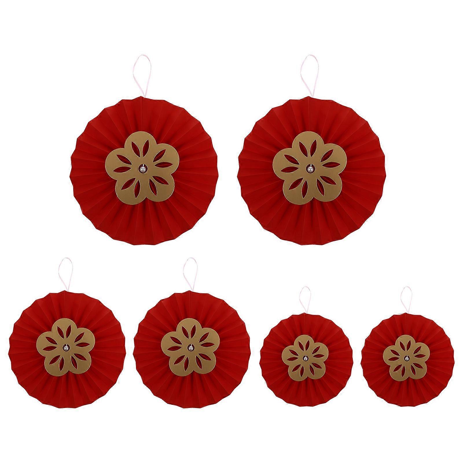 Wedding Fan Flower Decoration 6Pcs Red Paper Chinese Fan Set