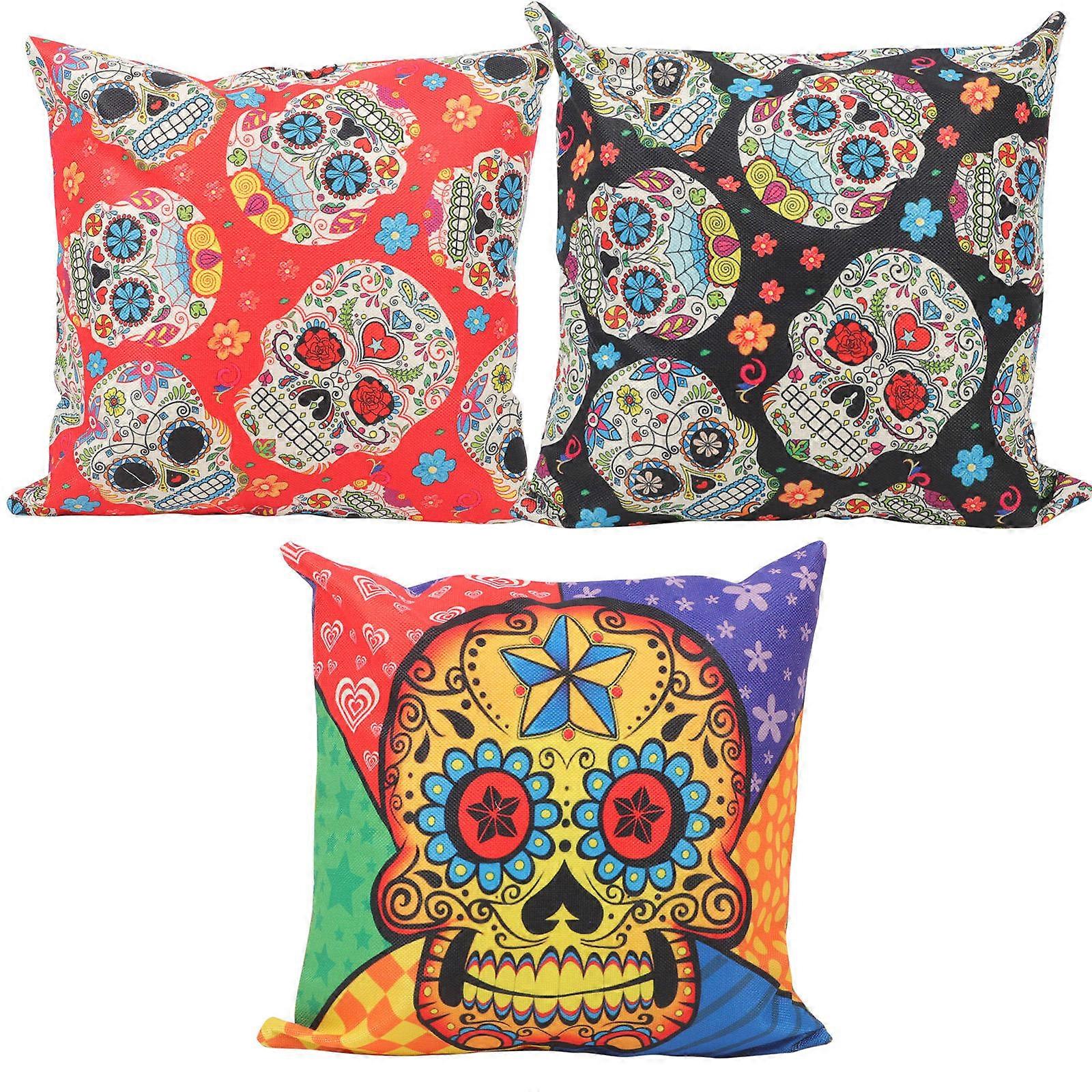 Skull Pattern Pillowcase 12 Pcs Pillow Protectors For Sofa Throw Pillow 17.68X17.68X0.39in Halloween Gift Giving