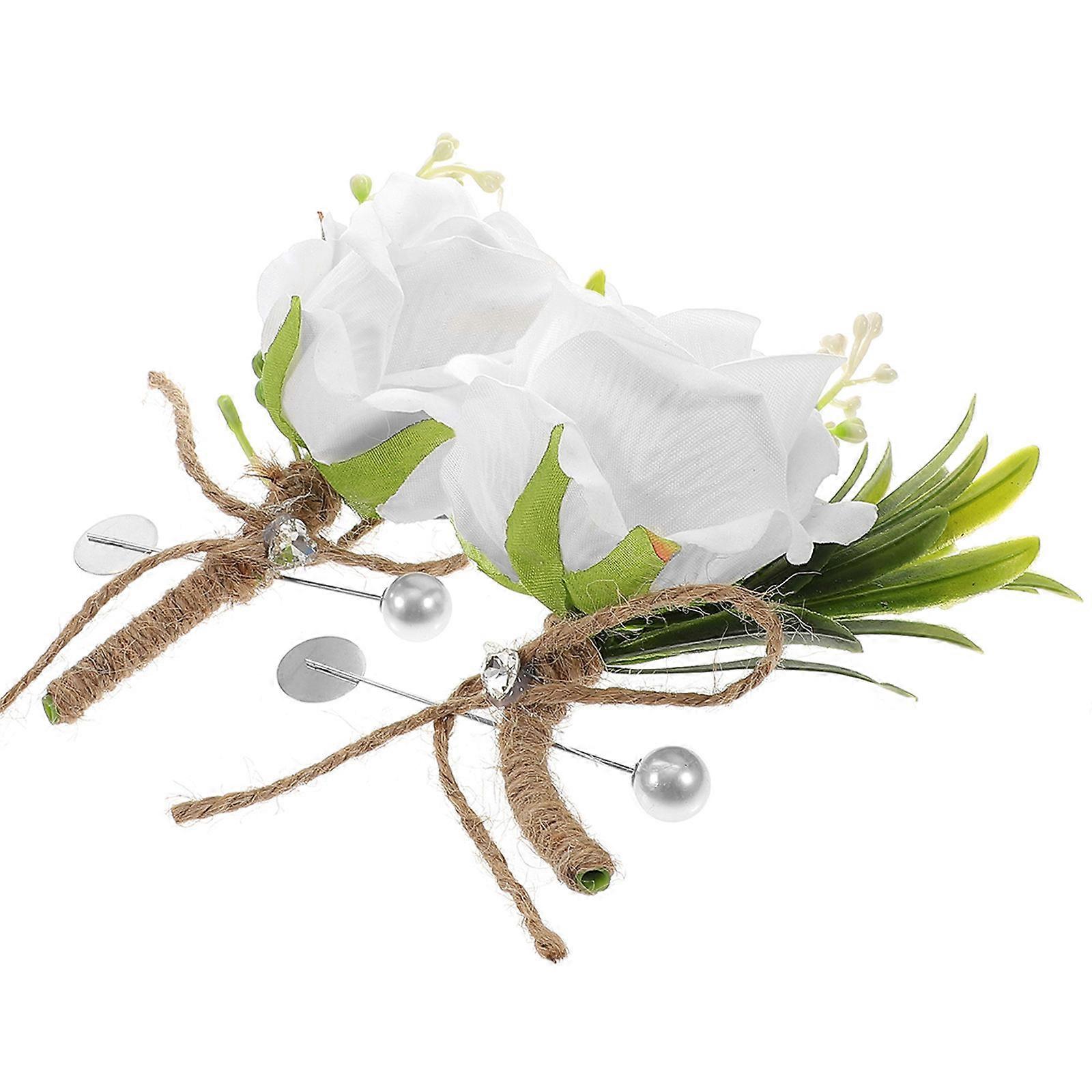 Groom Wedding Rose Boutonniere Corsages for Ceremony 2Pcs White Set