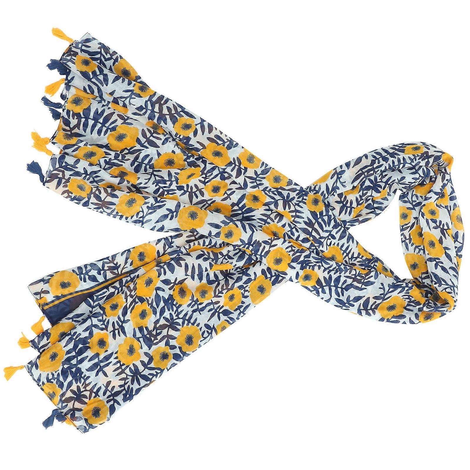 Bohemian Shawl Cotton Linen Wrap for Women Comfortable Dark Blue Scarf
