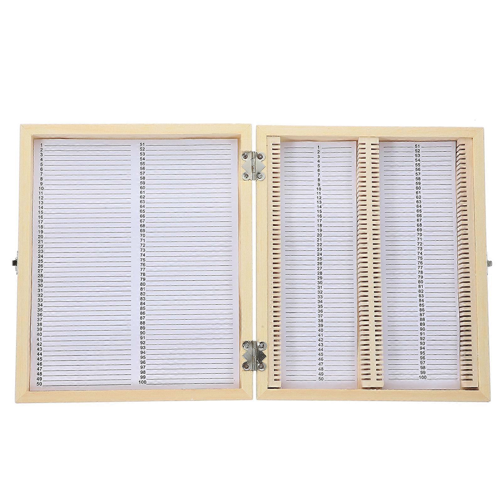 Our microscope is made of premium wood material. The storage box for use with prepared microscope slides. Numbered slots and contents sheet for identifying slides. Professional storage box protect the slides perfectly and appropriately. Features - Color: As shown. - Material: Wood, metal. - Size: 22.80X18.80X3.50cm/8.96X7.39X1.38inch. -Note: part buckle is style - Numbered slide positions and content sheet for listing microscope slides, simple and practical. - Premium and natural wooden material, It can be placed up to many slides, excellent performance. - Each slot is numbered to correspond to the slide inventory sheet on the inside cover of the box. - Each box is secured with metal clasp and , safe and reliable for you. - Professional storage box protect the slides perfectly and appropriately, useful and simple design. Package list: 3 x Wooden Slide Storage Box