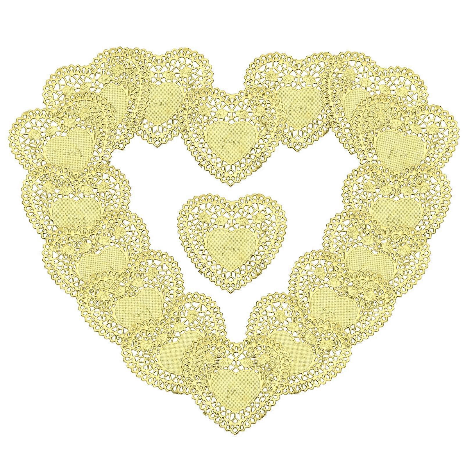 Golden Heart Paper Doilies for Decoration 100 Sheets Wedding Party Heart Shape Doilies