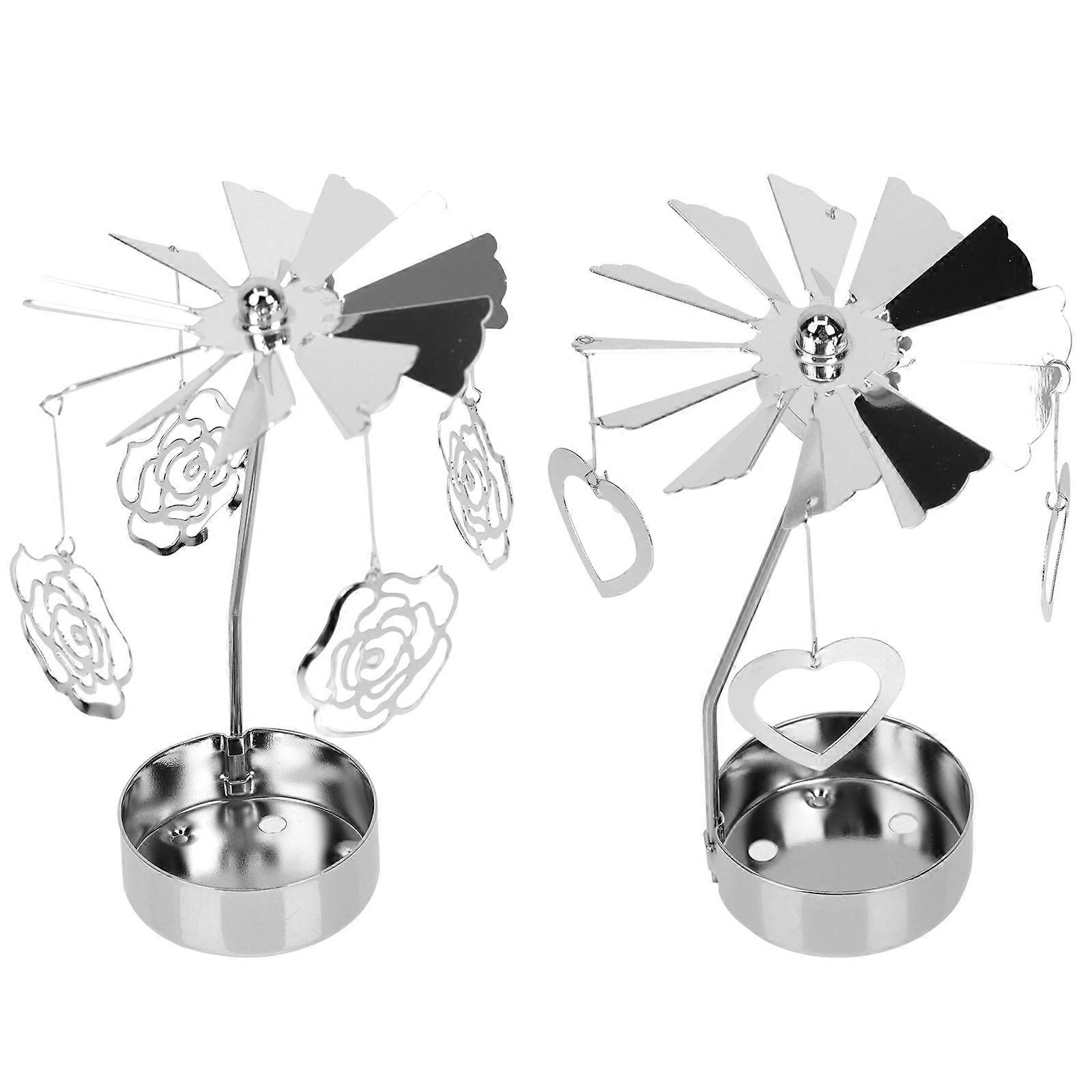 Decorative Candle Holder Metal Candlestick for Decor 2Pcs Silver Iron