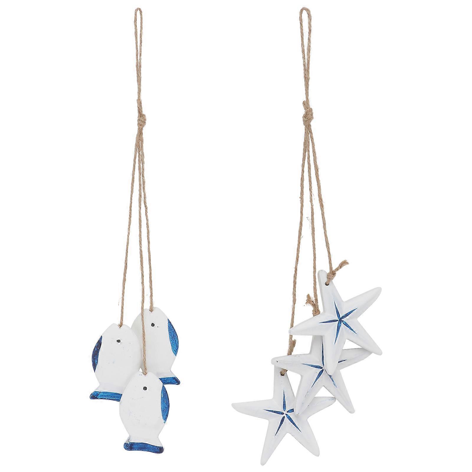 Mediterranean Style Wooden Wall Pendant for Decor 6Pcs Blue Hanging