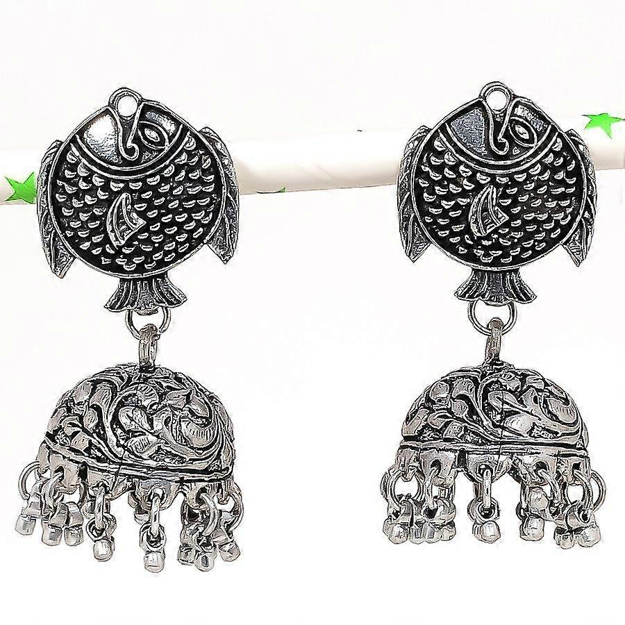Natural Indian Look Jhumki Gemstone Silver Tribal Bali Earring 1.81" E9c68