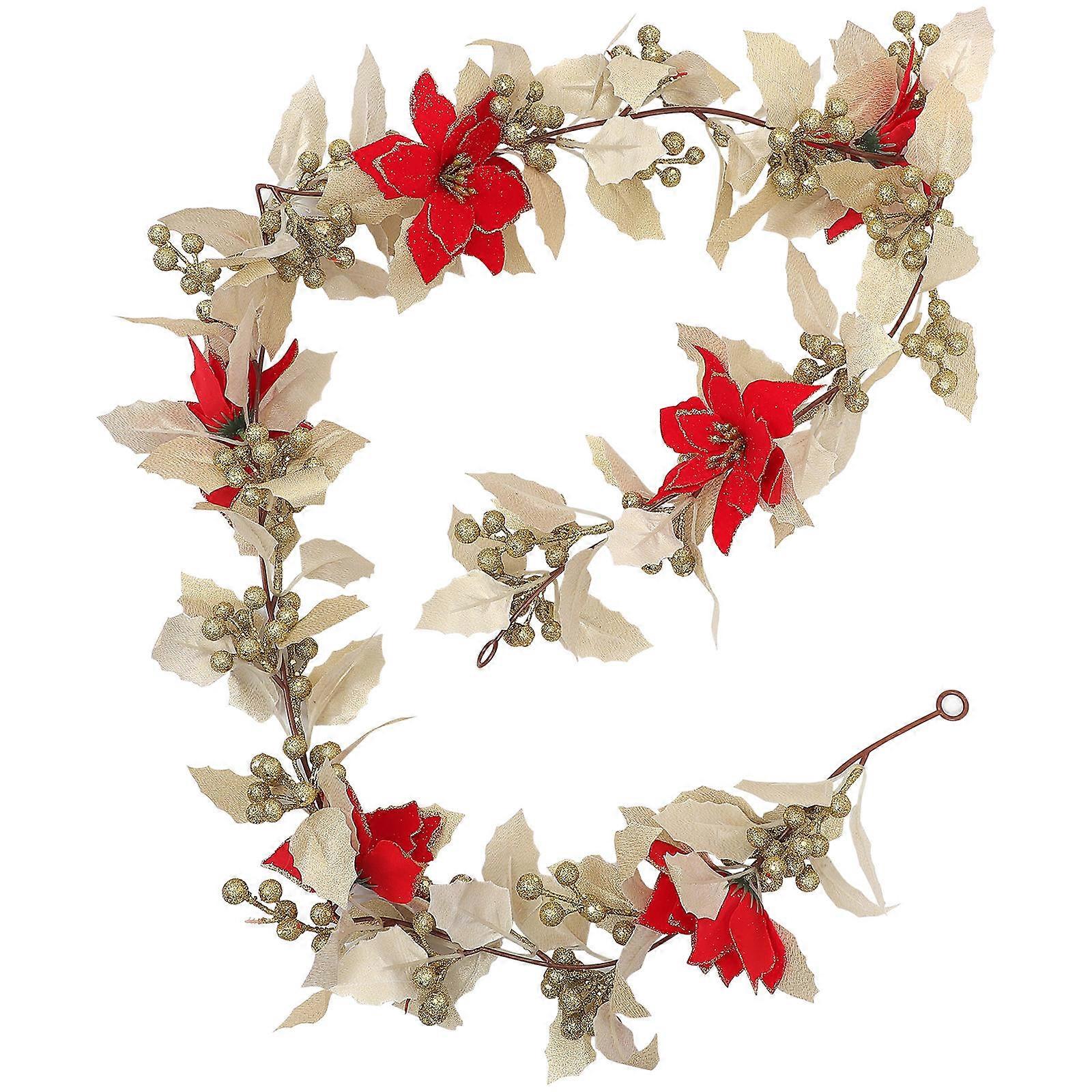 Christmas Tree Garland Silk Artificial Garland for Decor Glitter Flower Golden