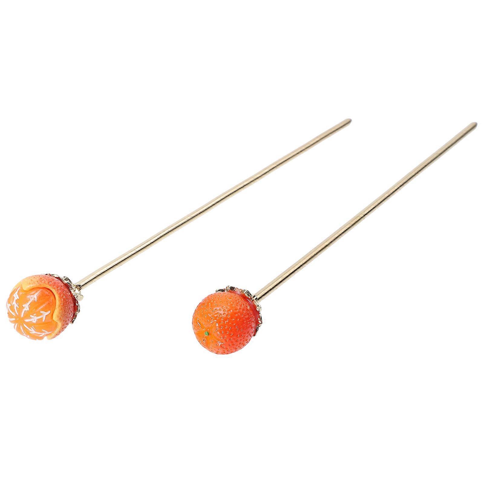 Girl Hair Ornament Orange Hair Stick for Home 2Pcs Durable Metal Design