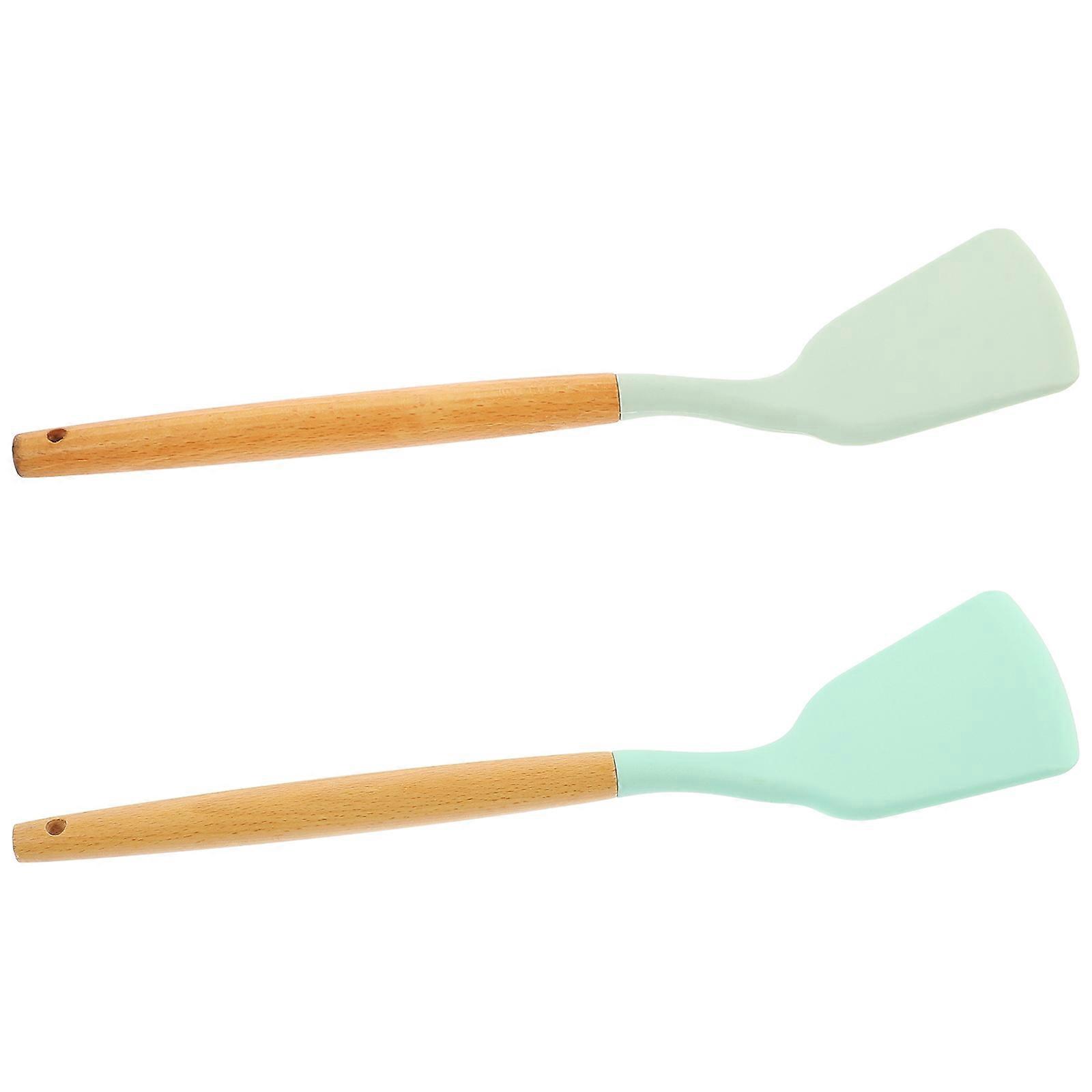 Wooden Handle Silicone Spatula for Wok Cooking 2Pcs Non Stick Kitchen Utensil