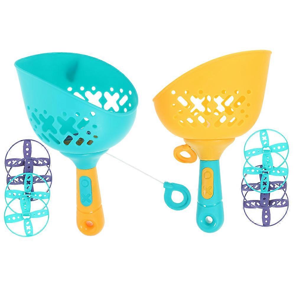 Hand Pulled Flying Disc Outdoor Toys for Kids 2Sets Plastic Fun Launcher
