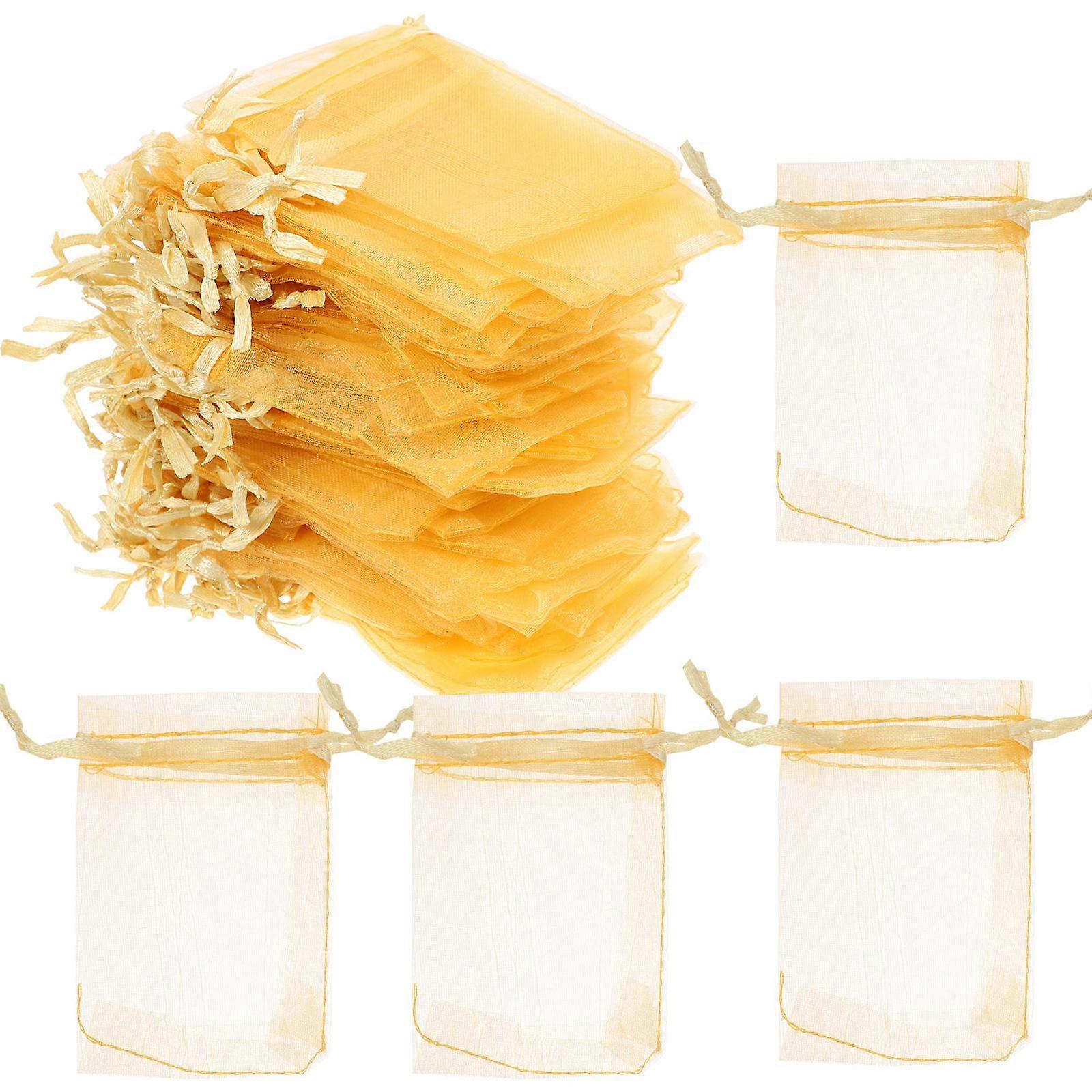 Wedding Favor Organza Bags Jewelry Drawstring Bags for Storage 100Pcs Golden