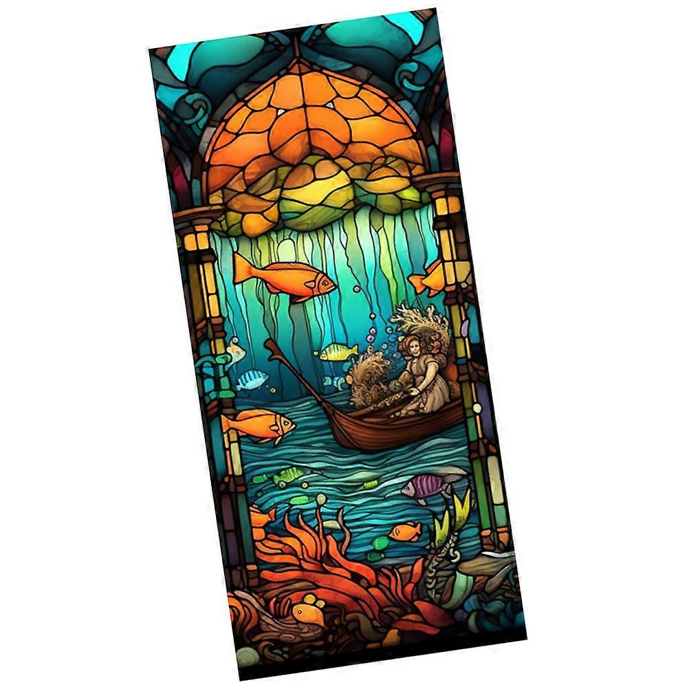 House Window Privacy Film Underwater World Design Removable Decal Multi Color 100X45CM Light Filtering 1Set