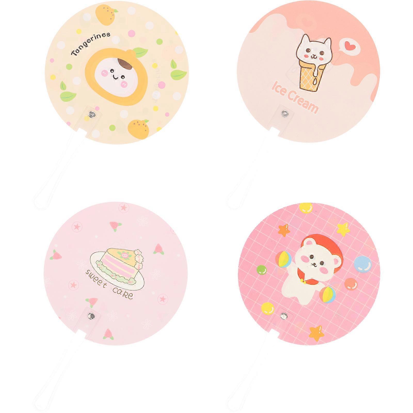 Round Handheld Fan Cartoon Hand Fan for Summer 4Pcs Portable Small Fans