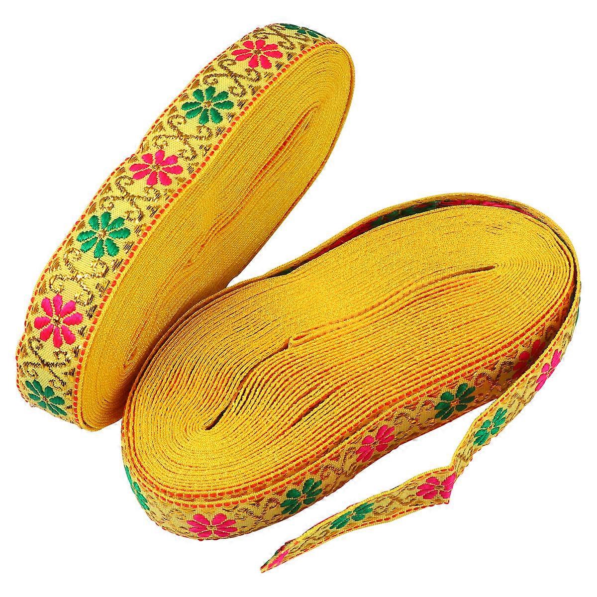 Ethnic Embroidery Lace for Decor 2Pcs Yellow DIY Clothes Accessories