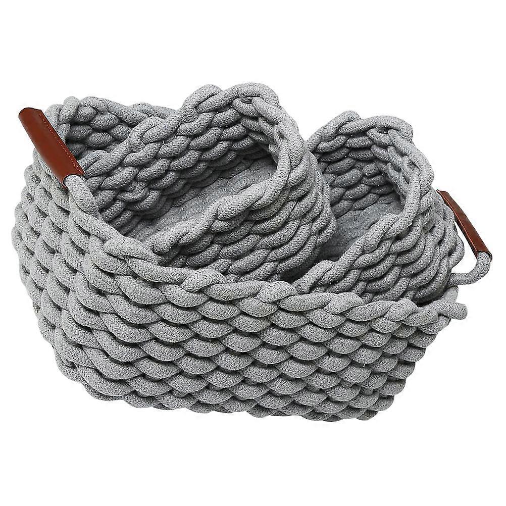 Woven Cotton Rope Storage Basket for Sundries Organizer 1Set Grey