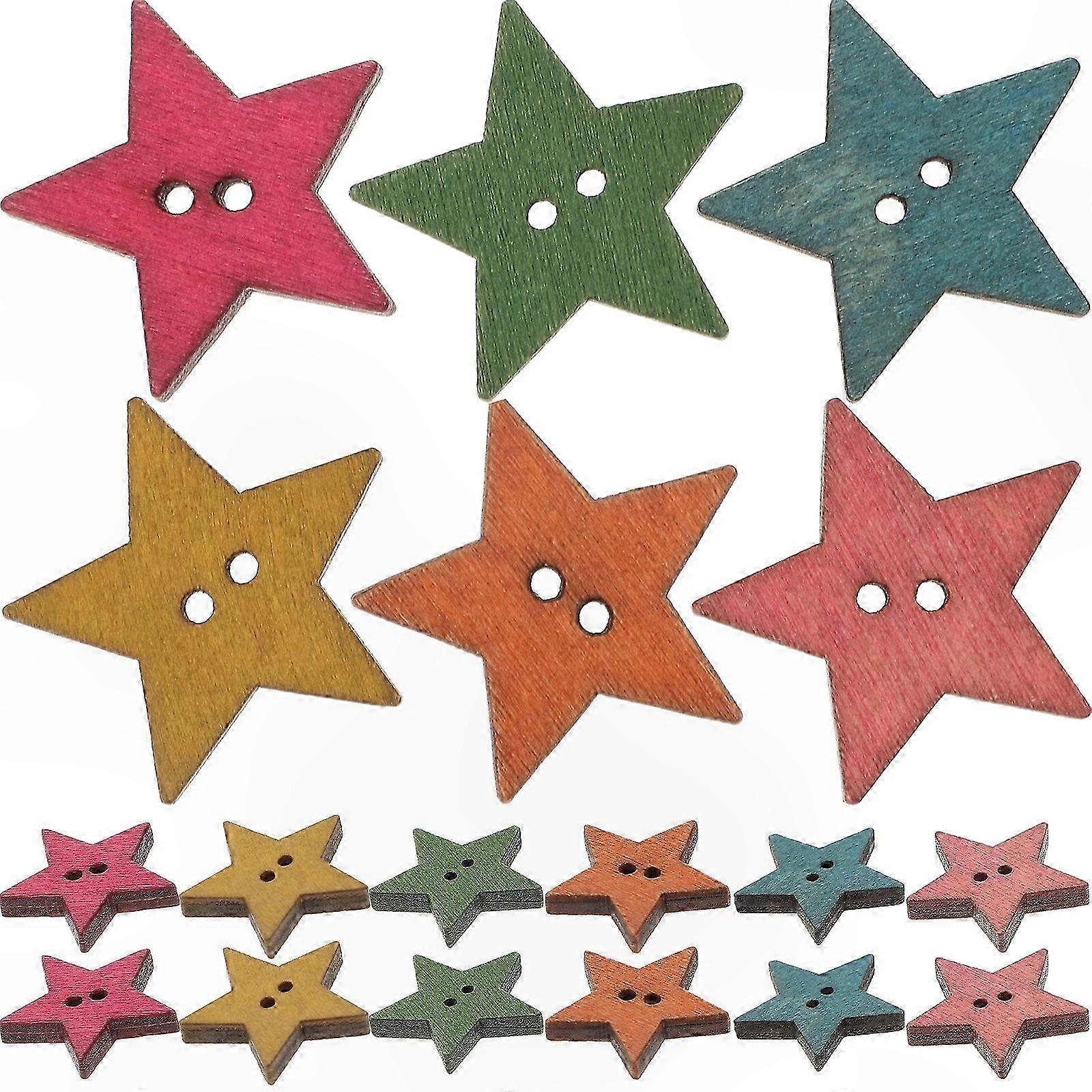50pcs Colorful Star Shaped Wooden Buttons with Two Holes for DIY Craft Embellishments