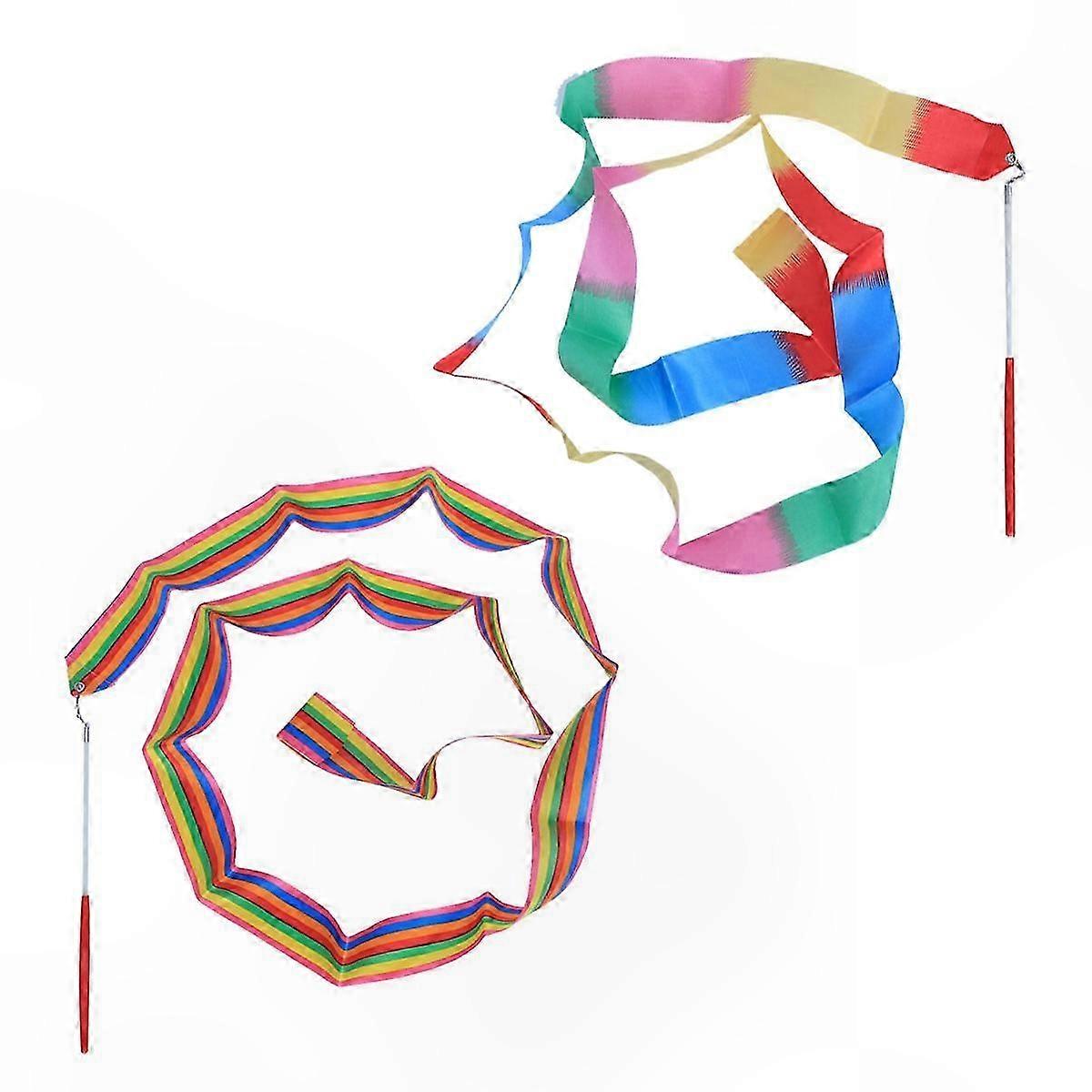 2 Pcs 2M Rhythmic Gymnastics Ribbons with Sticks for Kids Dance Streamers Twirling Rods