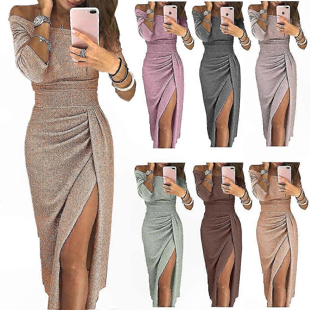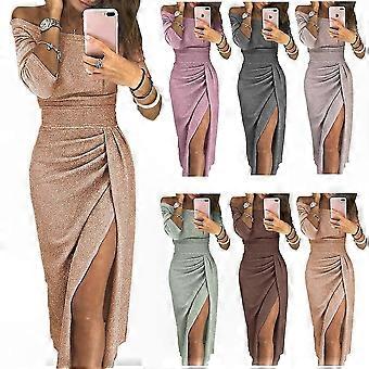 Women's Sheath Dress with Slit Off-Shoulder Shiny Evening Gown