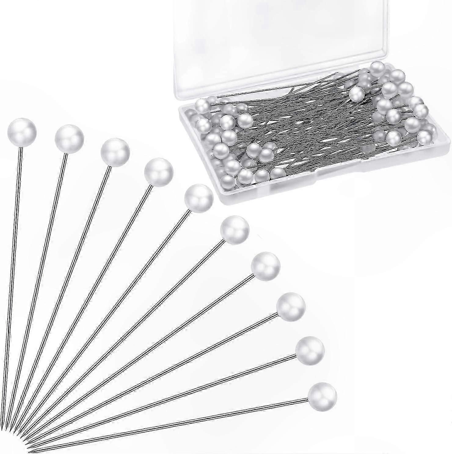 100pcs White Pearl Head Sewing Pins for Fabric, Straight Pins for Craft Projects and Bridal Bouquets