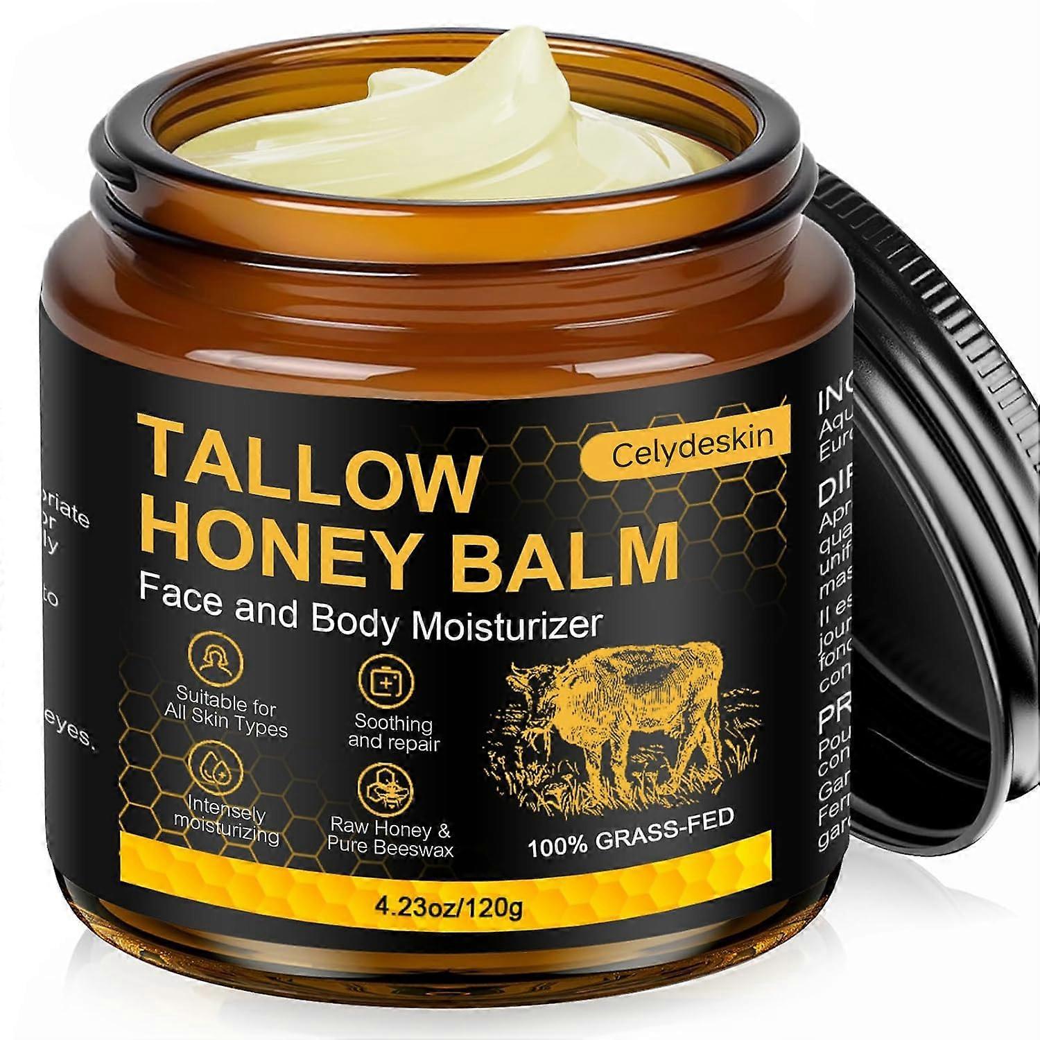 Organic Beef Tallow Balm with Raw Honey for Dry Sensitive Skin and Eczema, Unscented 4.2oz