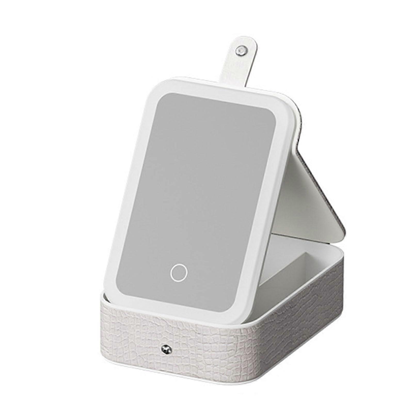 LED Makeup Organizer with Jewelry Storage, Adjustable LED Lighting, PU Leather Travel Case White