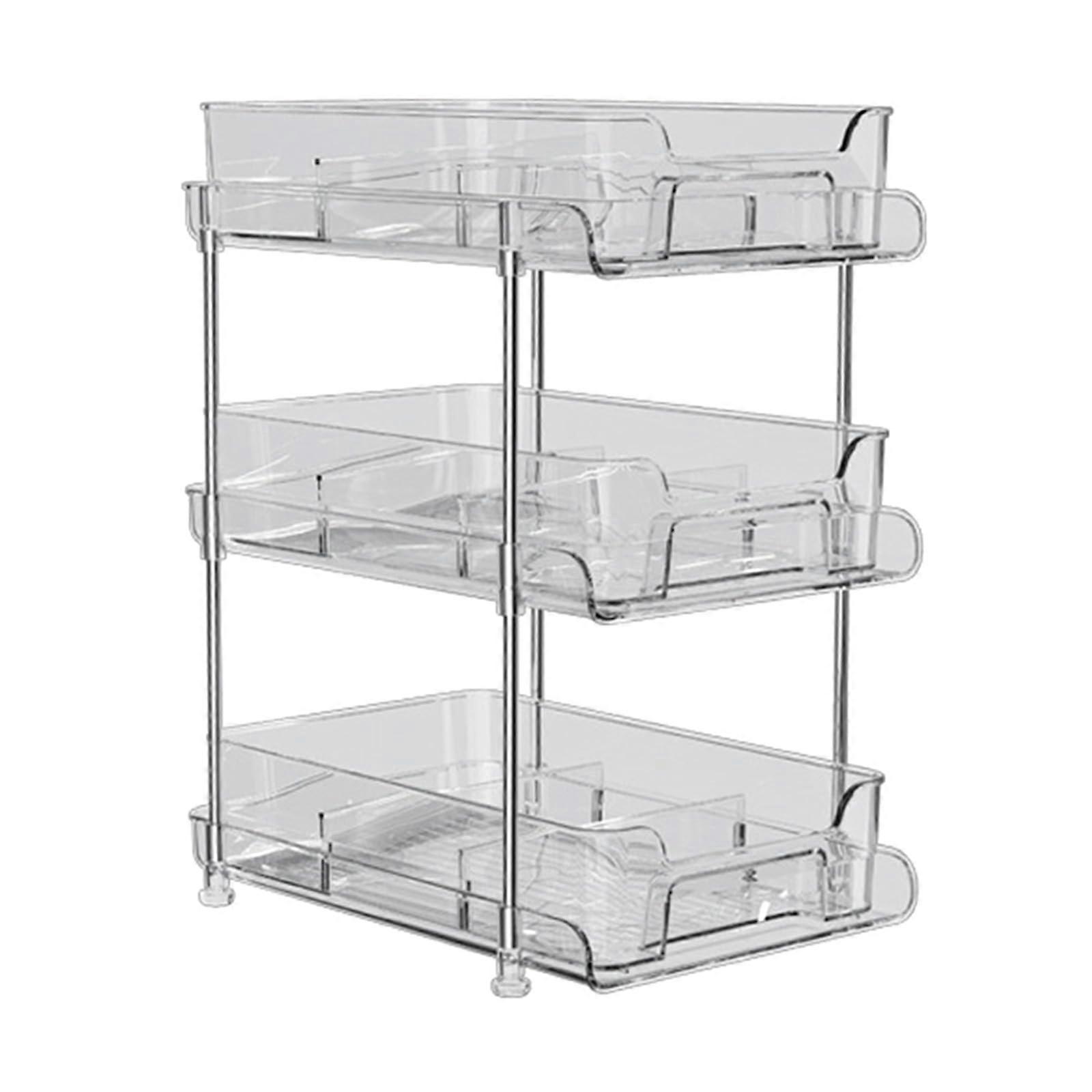 Clear Pull Out Makeup Organizer ThreeLayer Cosmetic Storage Rack SpaceSaving Vanity Holder