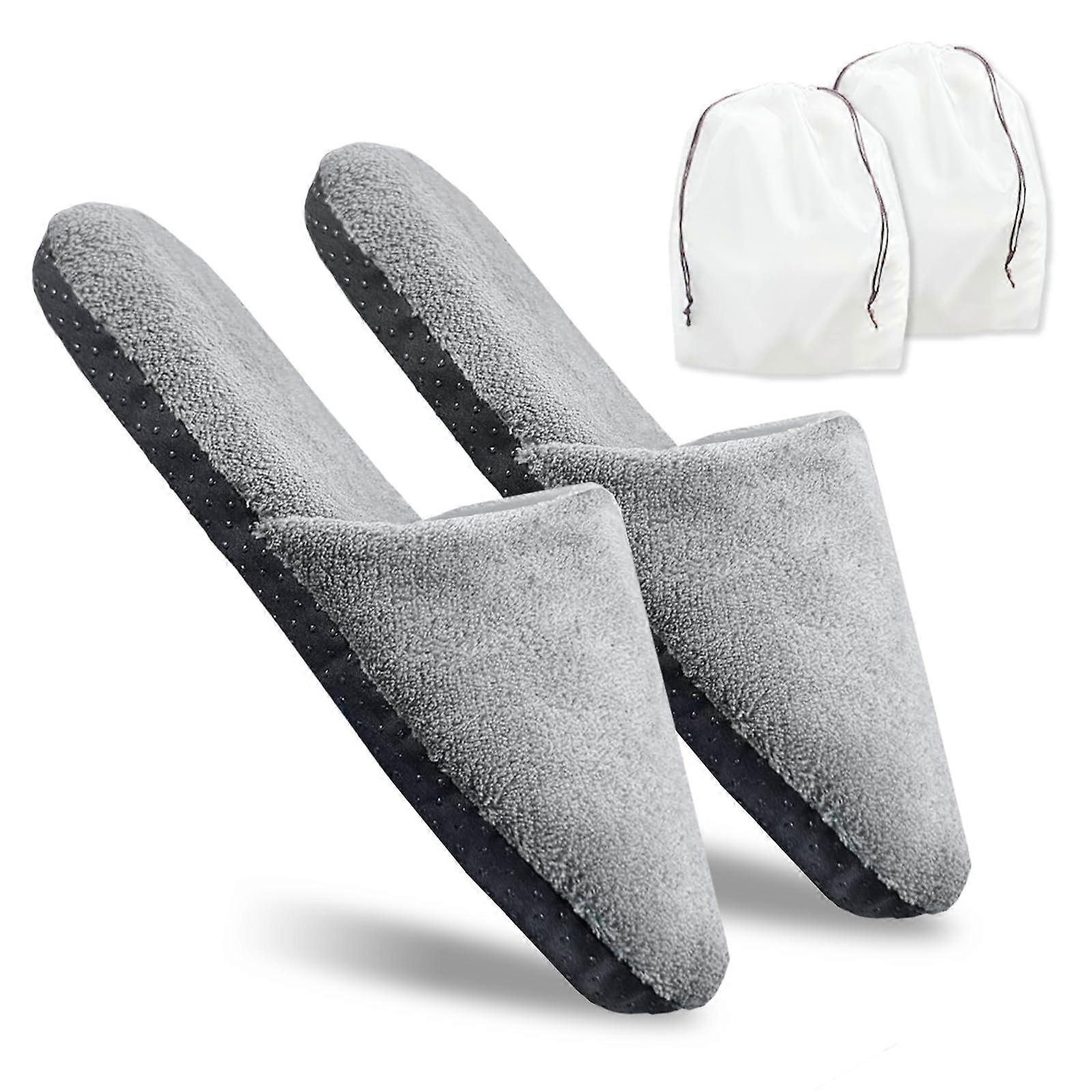 Grey Spa Slippers with NonSlip EVA Sole, Washable Hotel Guest Travel Slippers, 2 Pairs with Bags