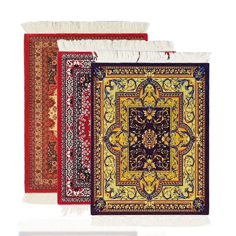 Persian Mini Woven Rug Mat Mousepad Retro Style Carpet Pattern Cup laptop PC Mouse Pad with Fring Home Office Table Decor Craft