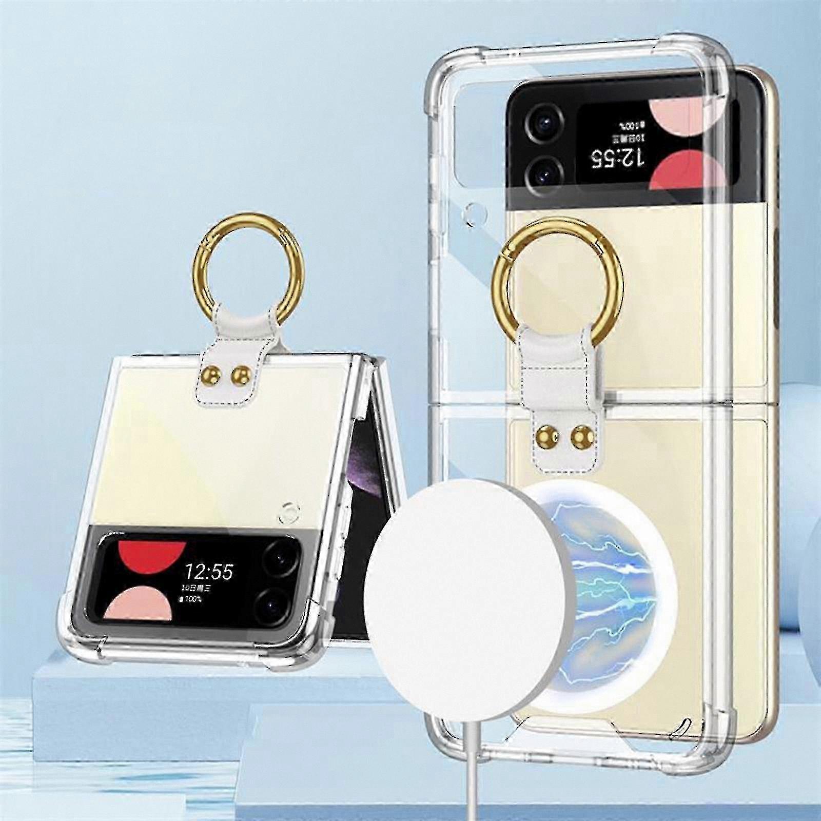 Magnetic Clear Case for Galaxy Z Flip 4, Ultra Thin Shockproof Cover with Ring Holder