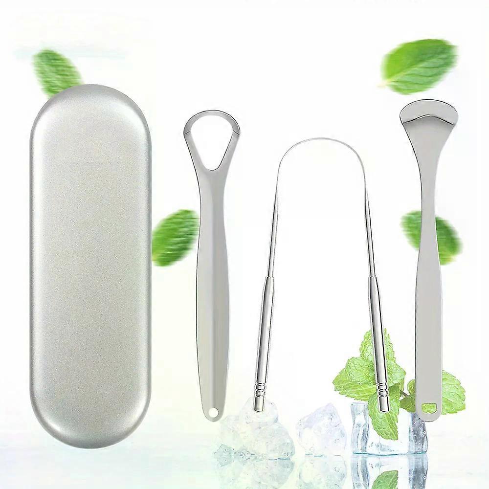 Premium Stainless Steel Tongue Scraper Cleaner Set Fresh Breath Cleaning Coated Oral Hygiene Tool Portable Travel Handy Carry