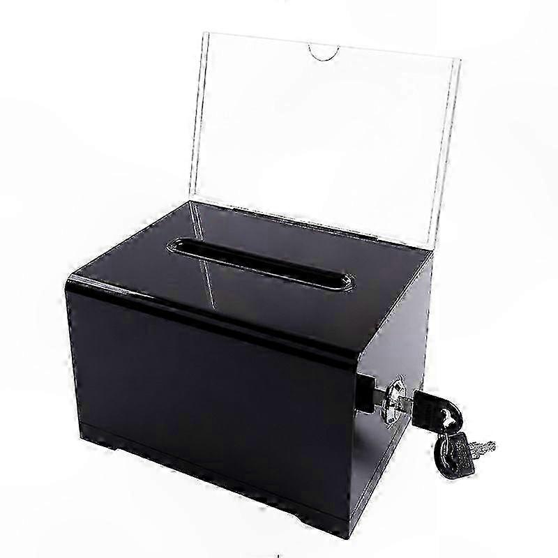 Lockable Acrylic Donation Box with Slot & Sign Holder for Raffle, Ballot, Money Collection