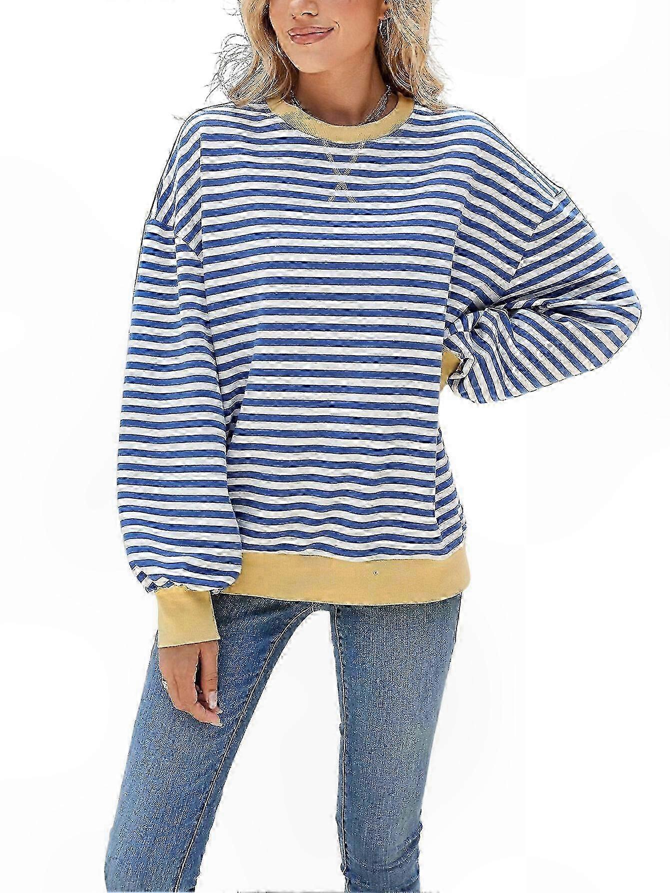 Color Block Crew Neck Long Sleeve Sweatshirt for Women, Striped Oversized Pullover Top