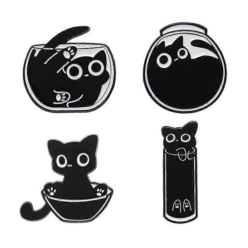 4-7pcs Black Cats Enamel Pins Cartoon Kitten Terrarium Floral Animal Brooches Lapel Badges Funny Jewelry Gift For Fans Friends