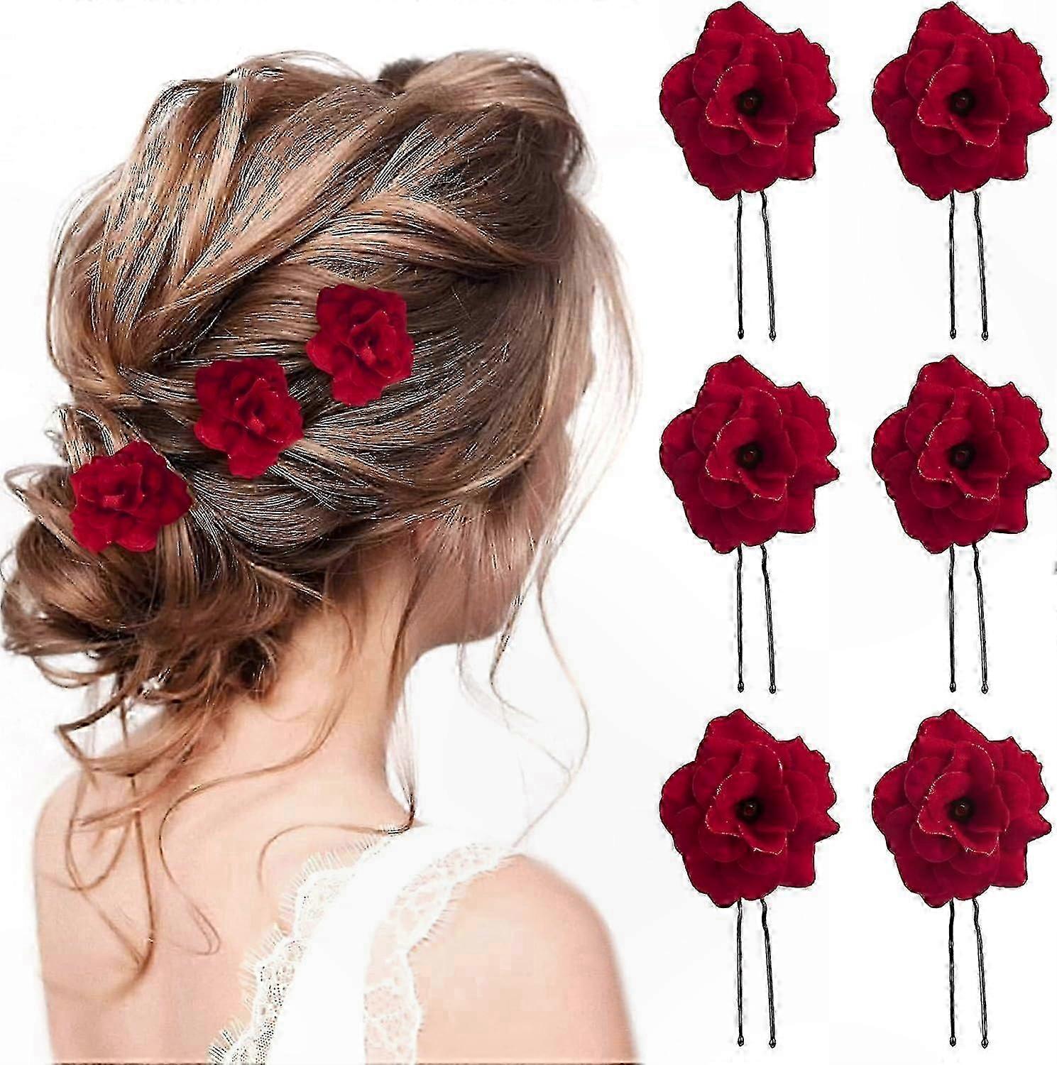 6-Pack Floral Rose Hair Clips U-Shaped Bobby Pins for Women & Girls Party Accessories
