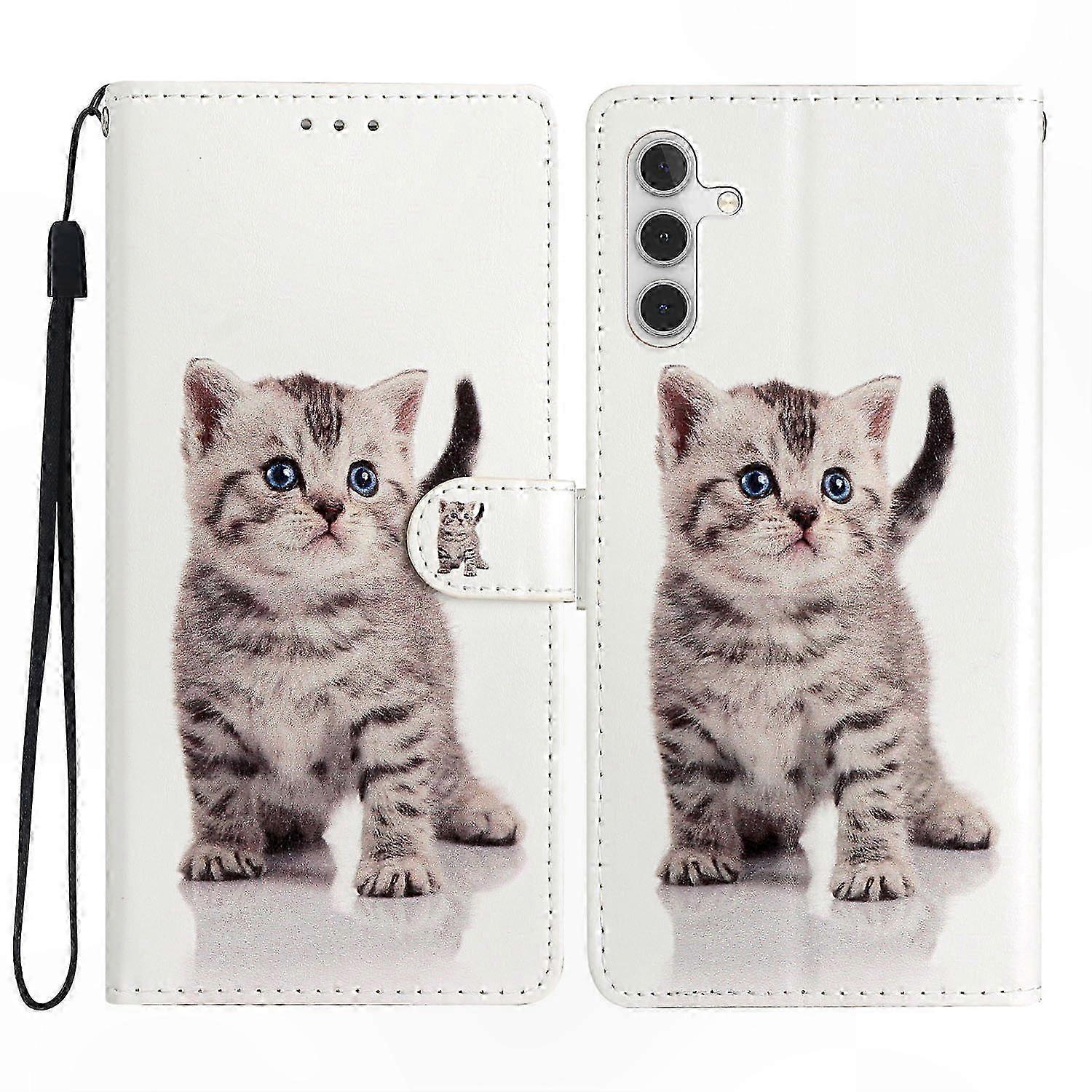 PU Leather Wallet Case with Pattern Printing and Strap for 5G Phones - Stand Function Cover